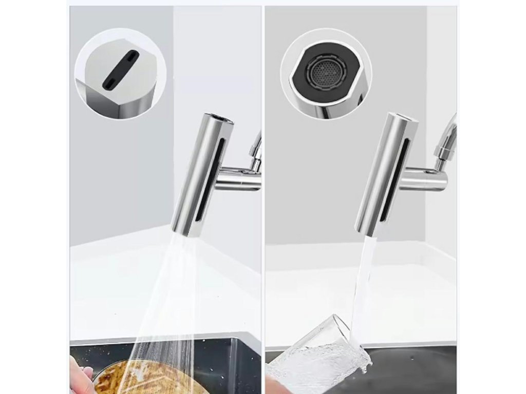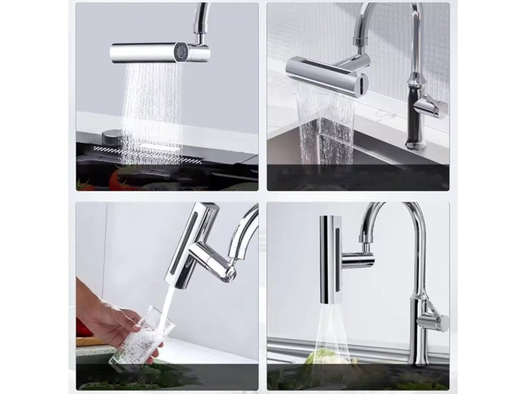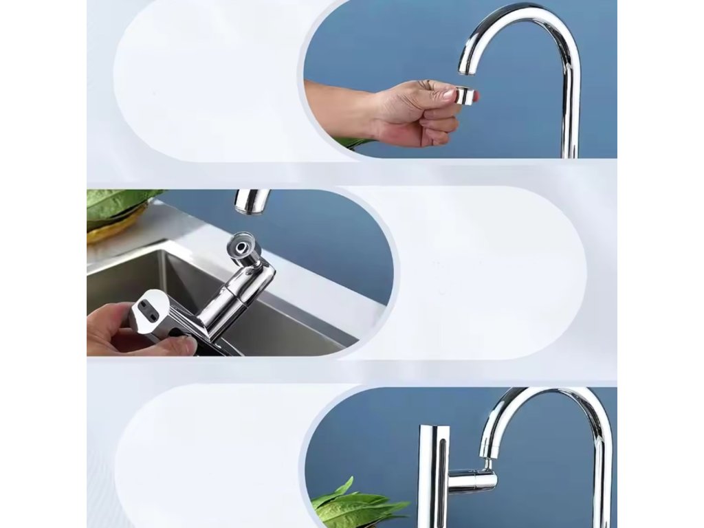 Univerzální, otočný kohoutek provzdušňovací nástavec - perlátor. Šetří vodu při zachování plného komfortu používání. Perlátor je plně otočný ve výšce kohoutku (vybavený kuličkovým ložiskem). Možnost rotace kolem vlastní osy ve druhé rovině (360 stupňů). Má 3 provozní režimy - dva typy proudu vody a pauza (tlačítko na krytu). Hodí se pro velkou většinu vodovodních baterií dostupných na trhu. Vyznačuje se vysokou odolností proti tvorbě vodního kamene. Instalace perlátoru je velmi snadná – stačí jej našroubovat na výtok baterie s vnějším závitem M22.