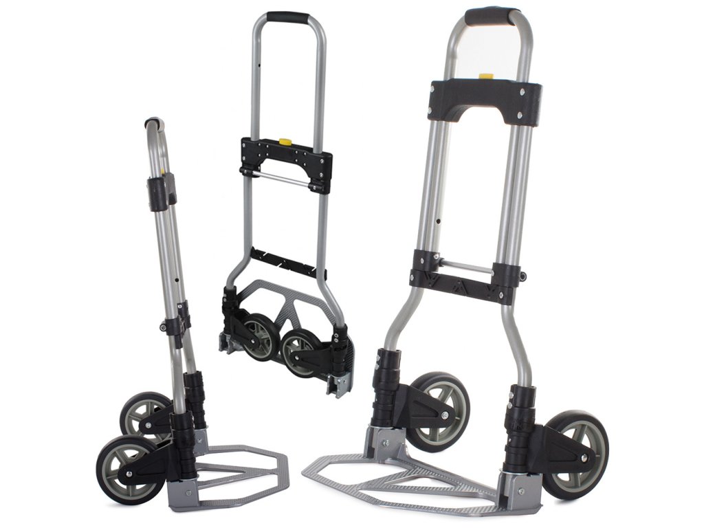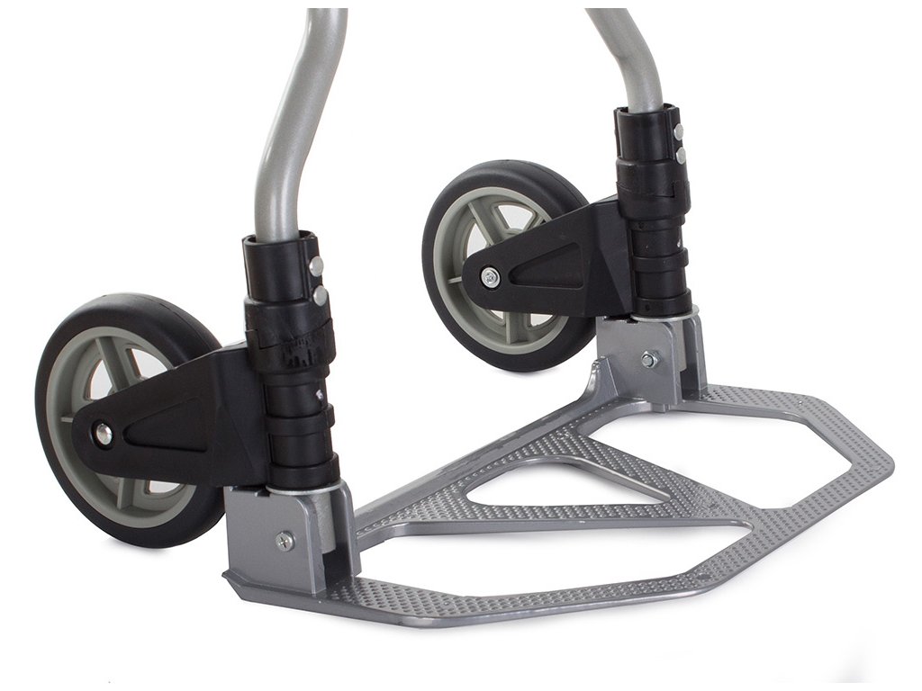 Robustní hliníková konstrukce umožňuje nosnost 50 kg při horizontální přepravě a 35 kg při vertikální přepravě (např. po schodech).