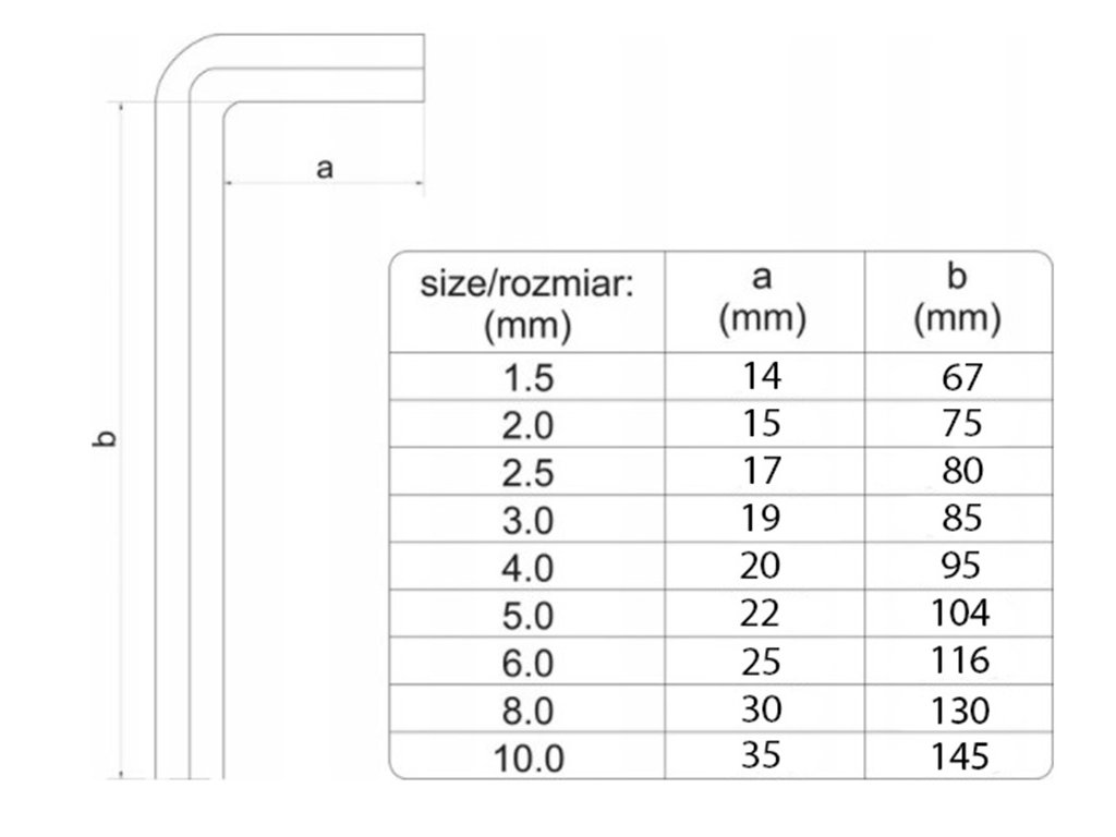 Sada imbusových klíčů je zabalena v praktickém a šikovném plastovém obalu. Jsou vyrobeny z vysoce kvalitní oceli, která se vyznačuje odolností a pružností. Vysoce přesná sada oboustranných klíčů, která umožňuje práci v těžko přístupných místech. Klíče ve tvaru písmene "L", se skvěle hodí pro přesnou práci v každé dílně a domácnosti.