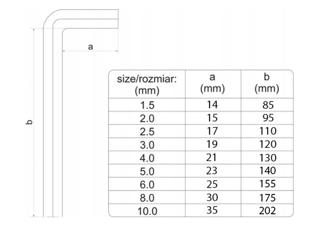 Vyrobeno z vysoce kvalitní oceli, která se vyznačuje odolností a pružností. Nejdelší klíč: cca 20 cm.