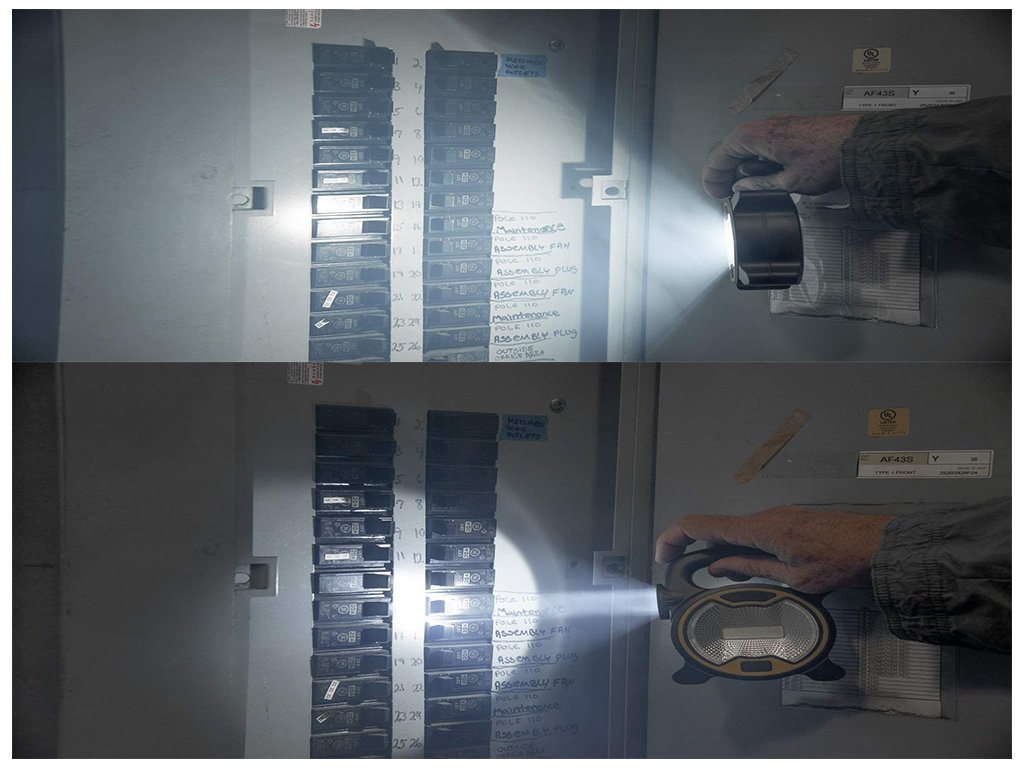 Svítilna má dva režimy svícení na přední a boční straně přístroje, takže je ideální jako "pátrací" nebo stojící halogenová sví tilna. Svítilna je napájena třemi bateriemi AA. Svítilna využívá parabolický reflektor k zaostření světla.
