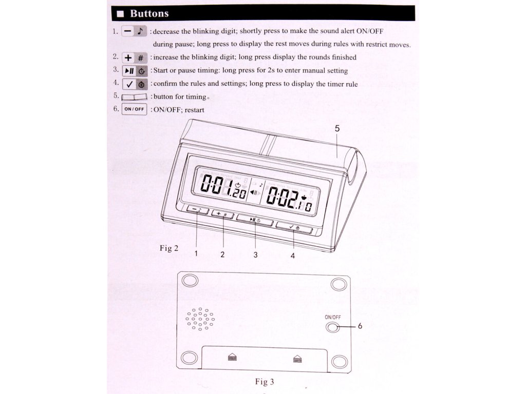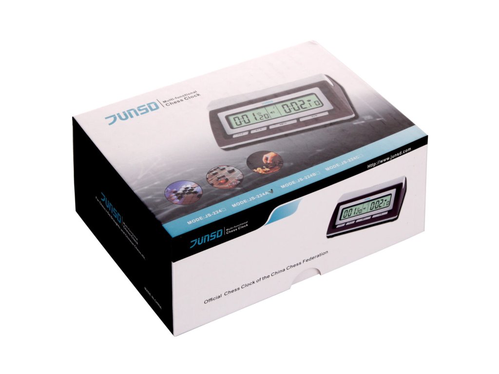 JUNSD JS-224A je populárním modelem šachových hodin pro své malé rozměry a 20 režimů nastavení. Široce variabilní nastavení hodin využijete pro hrání šachů, dámy a dalších strategických deskových her, u kterých je třeba měřit strávený čas před dalším tahem pro účely rozhodnutí patové situace nebo jednoduše pro získání zajímavé statistiky. Hodiny jsou vybavené možností nastavovat časování i během hry na obou stranách. Levá i pravá strana hodin může být nastavena s rozdílným časem a jinými parametry se zvukovým znamením, když je hra u konce. V režimu odpočtu času i v režimu pro sčítání času je třeba hodiny restartovat. Hodiny jsou opatřené velkým a přehledným LCD displayem, jejich vnější design je zhotoven z ABS plastu. Nezáleží jestli hrajete šachy se svými přáteli nebo jezdíte po krajských, státních i mezinárodních šachových turnajích. Hodiny Junsd JS-224A jsou vytvořené pro všechny závodní hráče všech úrovní. JS-224A jsou zabalené v úhledné krabičce. JS-224A: - vhodné pro různé druhy soutěží, včetně standardního režimu časování - 20 režimů časování - čas, doba hraní, počet kol a pohyby figurek jsou nastavitelné a mohou být během pauzy upravované - automatická paměť nastavených předvoleb - kolébkové tlačítko pro přepínání měření času - zvukové upozornění - upozornění slabé baterie - rozměry: 150 x 105 x 50 mm - 2x AA baterie, nízká spotřebaDoplňkové parametry