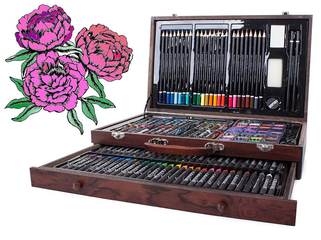 Kreslení a malování je nesmírně kreativní činnost, která rozvíjí představivost, ale abyste mohli své nápady realizovat a přenést na papír, potřebujete správné malířské pomůcky. Sada se skládá ze 143 prvků.