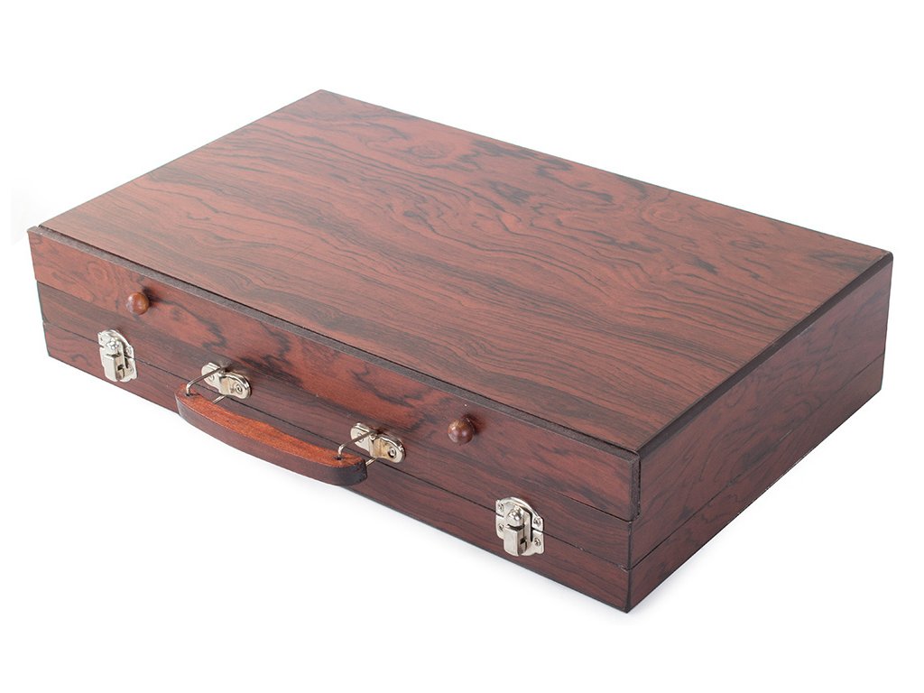 Celá sada je umístěna v dřevěném kufříku se zásuvkou, takže přenášení celého obsahu je snadné a pohodlné . Navíc je opatřena držadlem pro pohodlné přenášení.