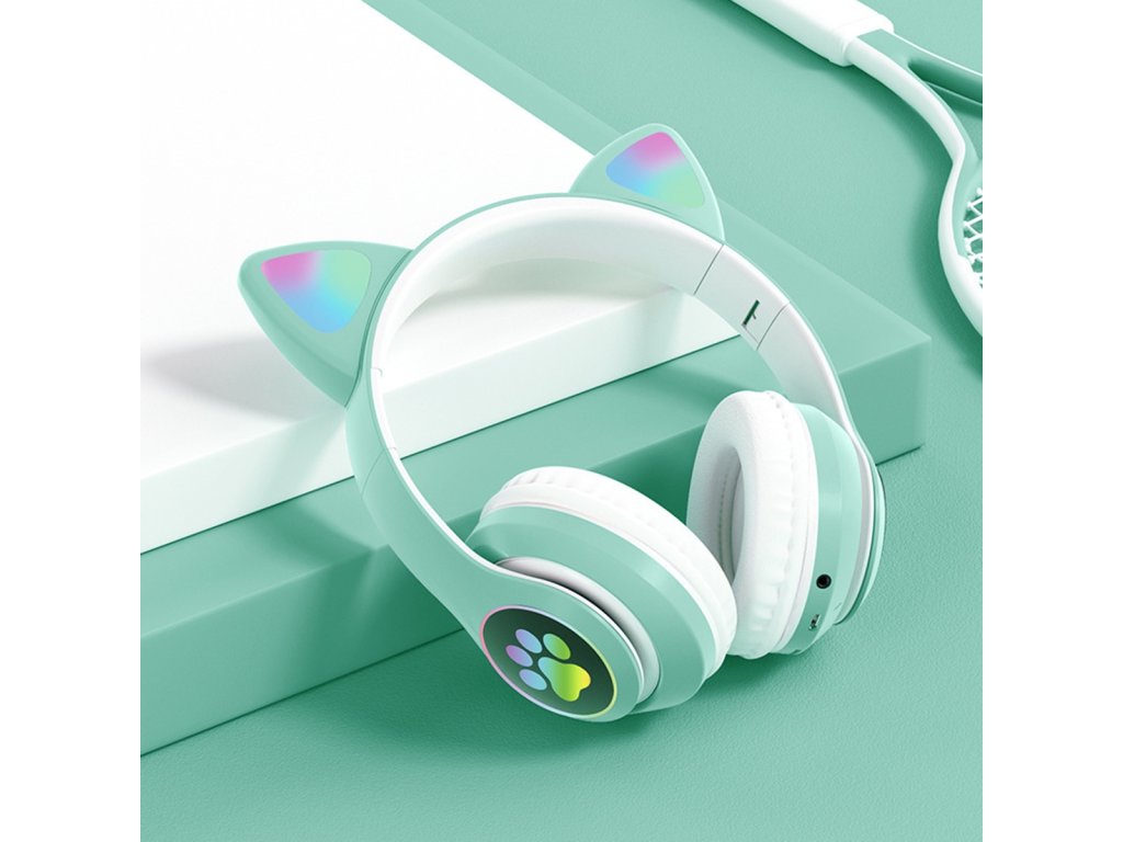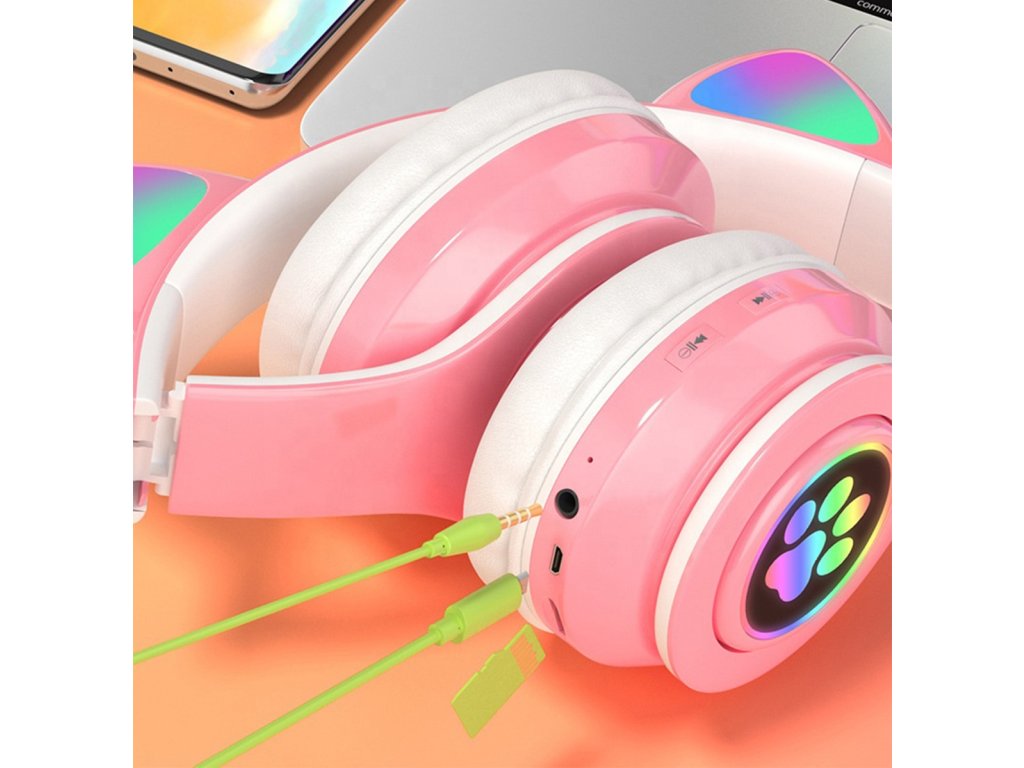 Pohodlná bezdrátová sluchátka přes uši pro děti. Charakteristické kočičí uši s LED podsvícením nechá vaše dítě vyniknout z okolí. Použití rychlého modulu Bluetooth 5.0 umožňuje pohodlné používání zařízení (dosah až 10 metrů). Napájení vestavěnou baterií Je to skvělá a velmi praktická vychytávka pro aktivní lidi a všechny, kteří si cení pohodlí při používání zařízení. Pohodlné náušníky a redukce hluku tlumí zvuky přicházející zvenčí a výrazně zlepšují kvalitu přehrávané hudby. Díky promyšlenému designu jsou extrémně lehké a pohodlné. Vestavěná fyzická tlačítka usnadňují ovládání funkcí sluchátek. Vybaveny vestavěným FM rádiem a čtečkou paměťových karet microSD s MP3 přehrávačem umožňují používat zařízení bez připojení k chytrému telefonu.