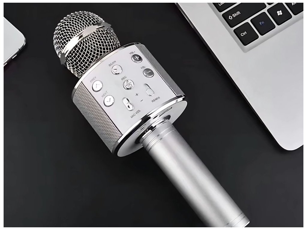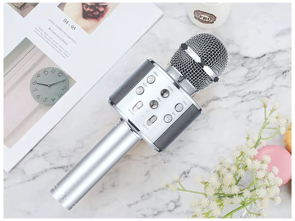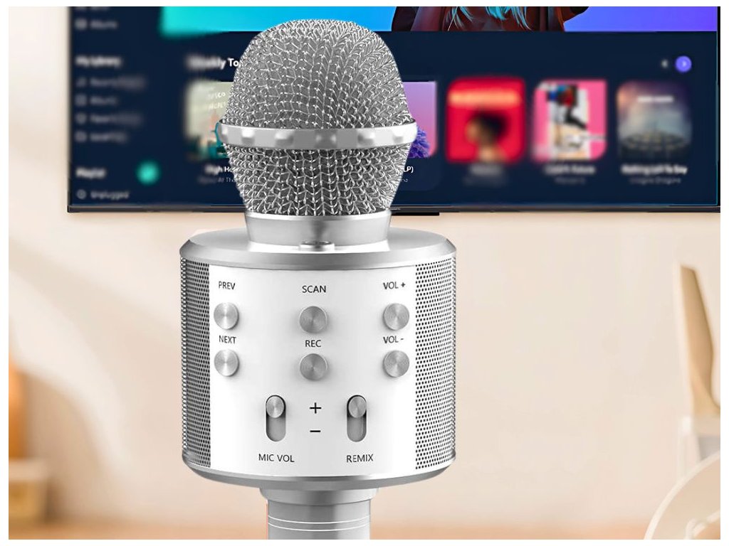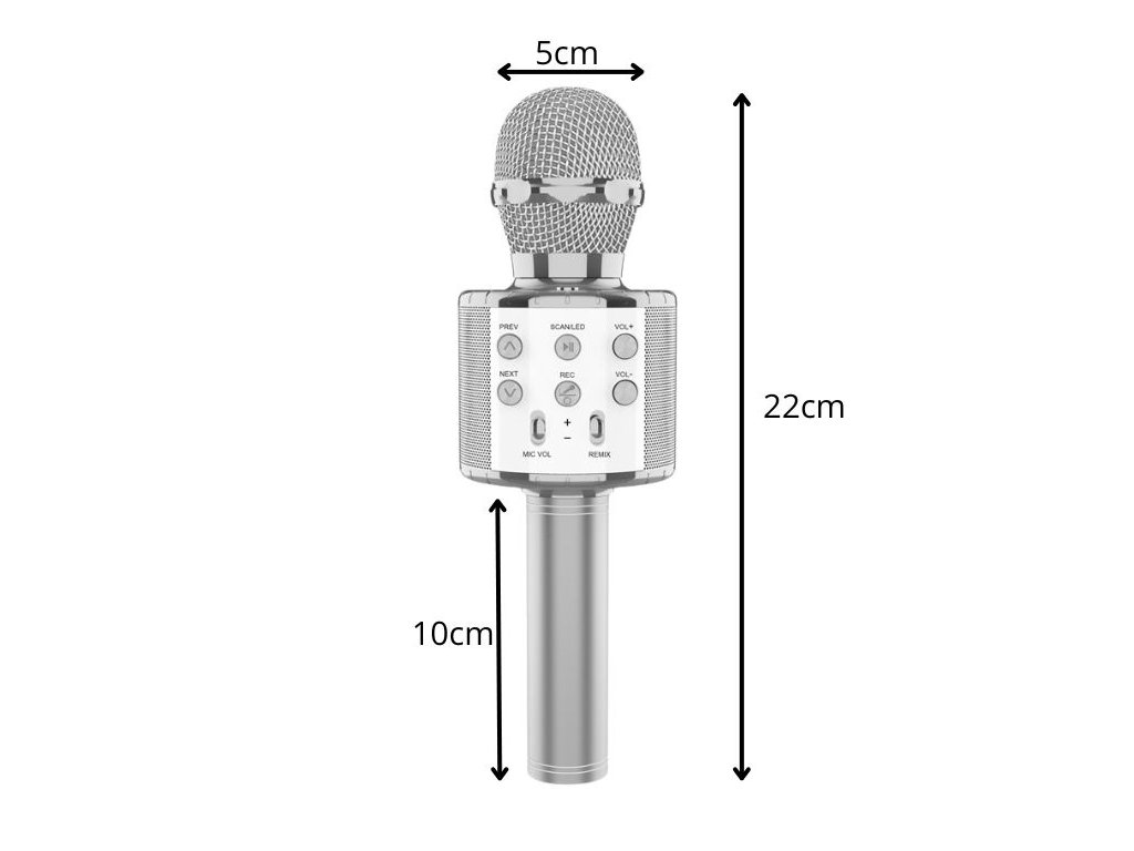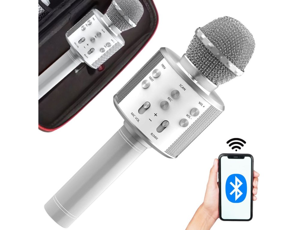 Bezdrátový mikrofon ideální pro karaoke párty a nejen to, pro malé i velké, který zaručuje skvělou zábavu. Během zpěvu lze regulovat hlasitost doprovodné hudby, sílu zvuku a navíc zapnout funkci echo, díky čemuž se můžeme cítit jako na skutečném koncertě.