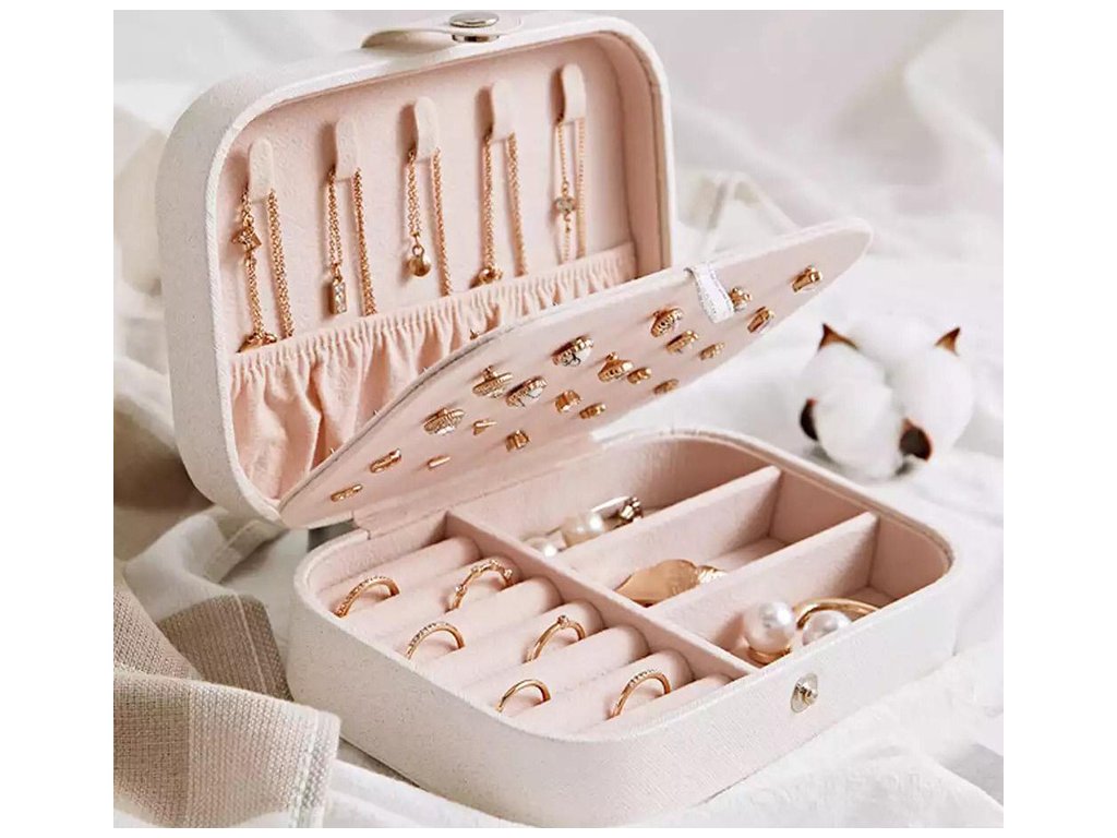 Prostorná šperkovnice, která vám umožní uspořádat všechny druhy šperků. Organizér je vybaven různými typy přihrádek, které úspěšně pojmou velké množství prstenů, řetízků, náušnic atd.