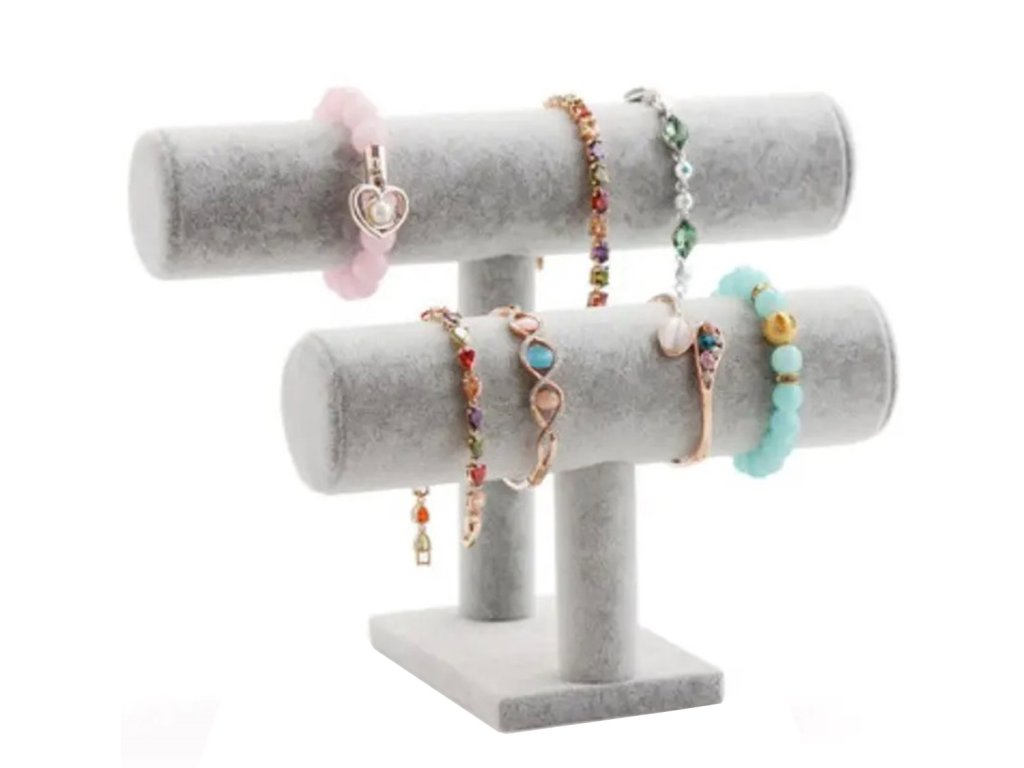 Praktický a estetický stojan na šperky. Zobrazovací jednotka, která je nezbytná pro každou ženu, která si chce uspořádat svou sbírku náramků, hodinek a dalších šperků a vystavit je estetickým způsobem. Skvěle poslouží také ve všech druzích výkladních skříní a výloh, v klenotnictví nebo zastavárně. Díky dvěma širokým válečkům na ně můžeme umístit ještě více hodinek nebo šperků!