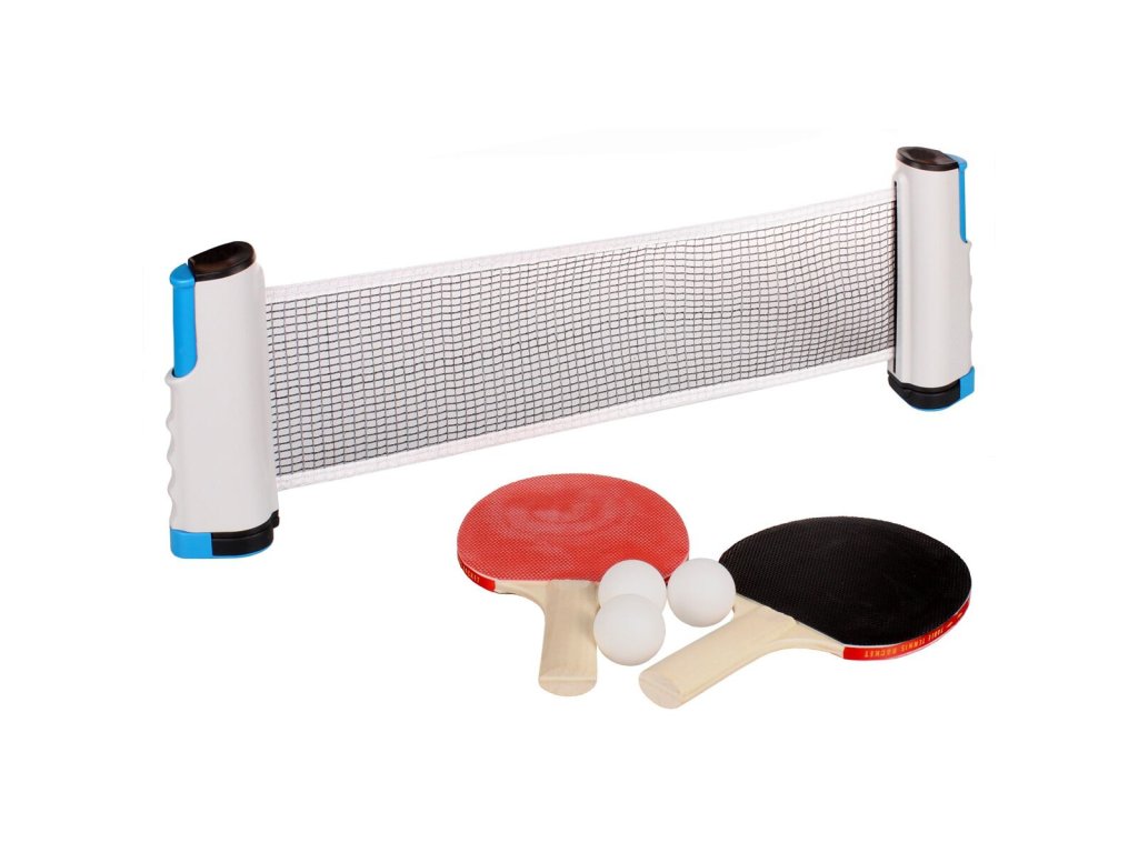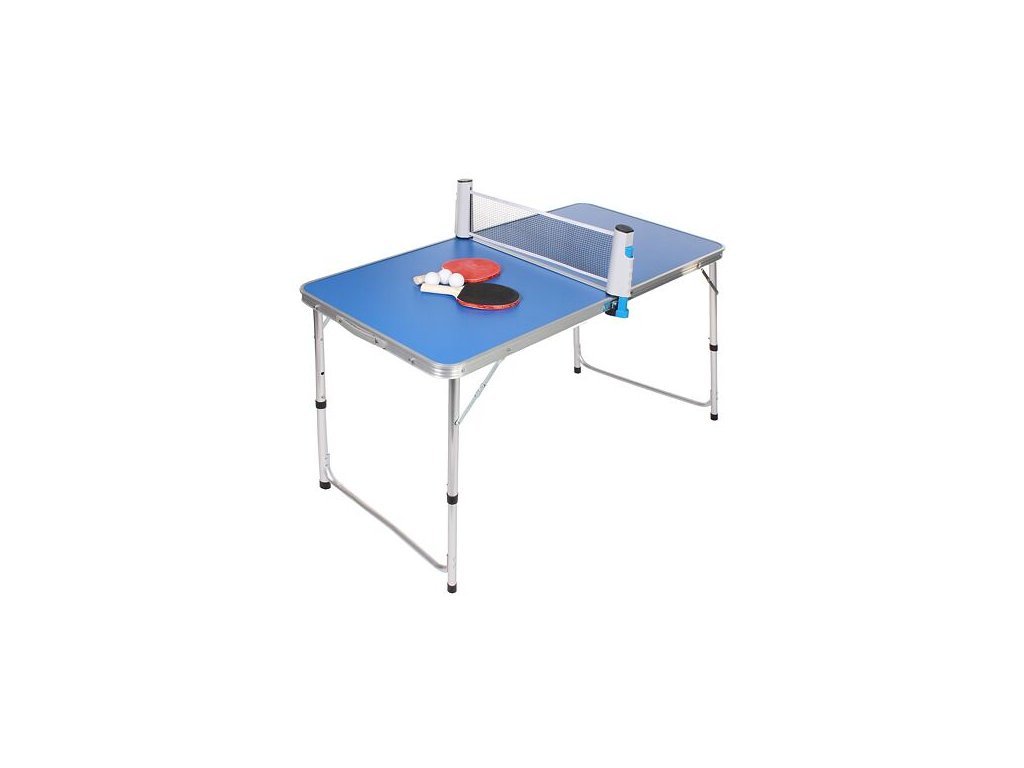 Skládací mini stůl na rekreační stolní tenis Kid Pong je ideálním řešením pro zábavu v malých vnitřních nebo venkovních prostorách. Ať už pořádáte rodinnou párty, pracovní teambuilding, nebo chcete originálně zabavit své děti, s mini stolem Kid Pong se určitě nudit nebudete. Stůl o rozměru 120 x 60 cm a nastavitelnou výškou (54/61/70 cm) s konstrukcí z hliníkové slitiny a deskou z odolného plastu je lehký a snadno skladný a proto velmi praktický pro uskladnění nebo přenesení. Součástí balení je síťka narolovaná do plastových držáků, dvě jednoduché pingpongové pálky se základním potahem a 3 míčky ve stahovacím síťovaném obalu. Příprava na hru vám zabere pouhých pár minut. Na boku složeného stolu rozevřete pojistné spojky, rozložíte stůl a podstavec a stůl zajistíte pojistnými spojkami na prostředku stolu. Nastavíte požadovanou výšku vysunutím spodní části podstavce a zaklapnutím pojistných kovových kolíků do otvorů v konstrukci. Při instalaci síťky jednoduše upevníte jeden držák na prostředek stolu vytažením jeho spodní části s pružinou, zachytíte za horní a spodní hranu stolu a uvolníte pružinu, následně vyrolujete síťku přes celou šíři stolu a upevníte druhý držák. Upozornění: - mini stůl Kid pong není vhodný pro děti do 3 let - na stůl se nesmí pokládat žádné předměty Parametry: Rozměry rozloženého stolu: - rozměr desky stolu: délka x šířka x tloušťka: 120 x 60 x 3 cm - výška stolu - nastavitelná do 3 poloh: 54/61/70 cm Rozměry složeného stolu: - délka x šířka x hloubka: 62 x 60 x 6,5 cm Rozměry držáků a síťky: - držáky: výška x šířka x hloubka: 17 x 7 x 5 cm – určeno pro maximální tloušťku desky stolu 4,5 cm - síťka rolovací: výška 15 cm, možnost roztáhnutí až na max. délku 140 cm Váha stolu bez síťky s držáky: 4 kg Materiál: - deska stolu: plast ABS - konstrukce stolu: hliníková slitina - držáky, síťka: plast PP,PE - pálky: topolové dřevo, gumový potah - míčky: plast Obsah balení: - rozkládací stůl - 2 x držák s narolovanou síťkou - 2 x pingpongová pálka - 3 x pingpongový míčekDoplňkové parametry