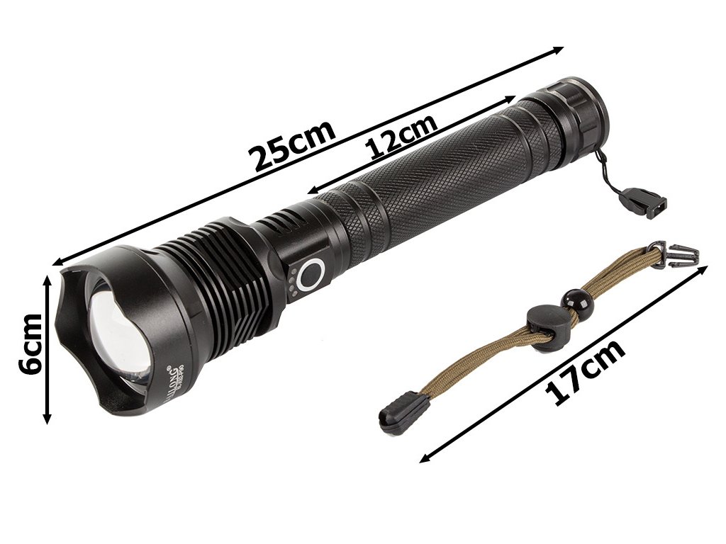 K napájení svítilny byla použita kvalitní lithium-iontová baterie/článek 26650, která umožňuje dlouhý provoz svítilny.