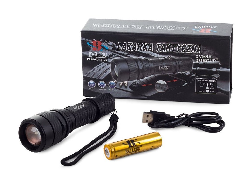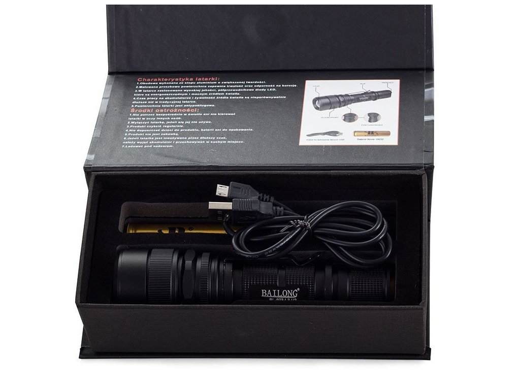 Taktická svítilna Bailong dobíjecí USB l3-u3 AKCE