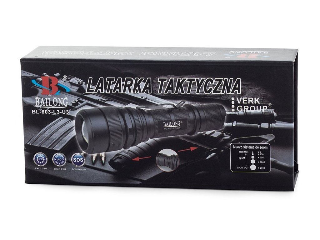 VOJENSKÁ TAKTICKÁ SVÍTILNA S LED DIODOU CREE XM-L3-U3 ZOOM MODEL 603 OD RENOMOVANÉ ZNAČKY BAILONG®