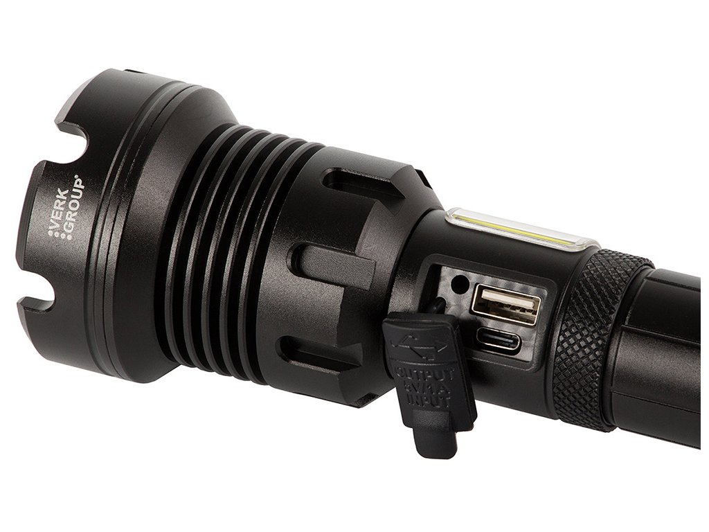 K napájení svítilnybyly použity vysoce kvalitní lithium-iontové baterie/články 26650, které umožňují dlouhý provoz svítilny. Kromě toho se články ve svítilně nabíjejí pomocí kabelu USB. Svítilna má také LED indikaci stavu nabití článků a funkci powerbanky V případě nouze můžete do vestavěné USB zásuvky svítilny připojit telefon nebo jiné zařízení.
