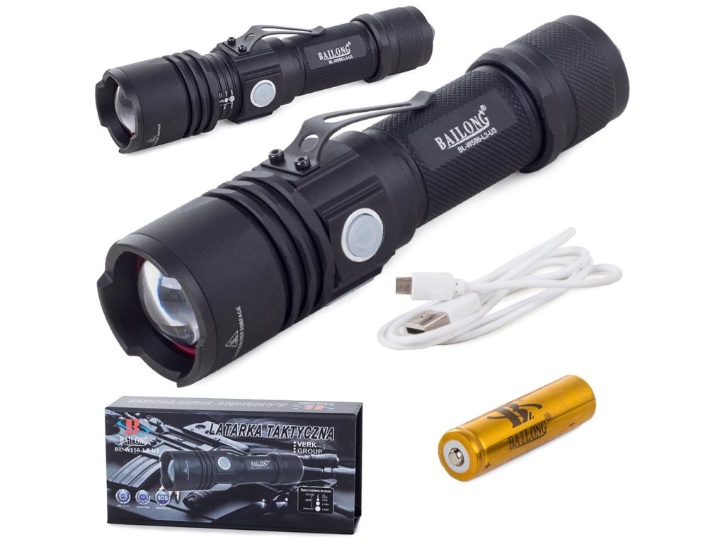 Verk 08289 Vojenská USB ZOOM svítilna Bailong cree xm-l t6 model W556 AKCE