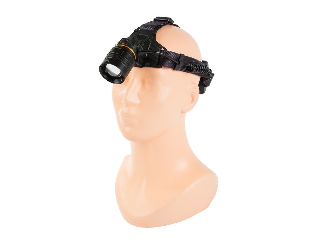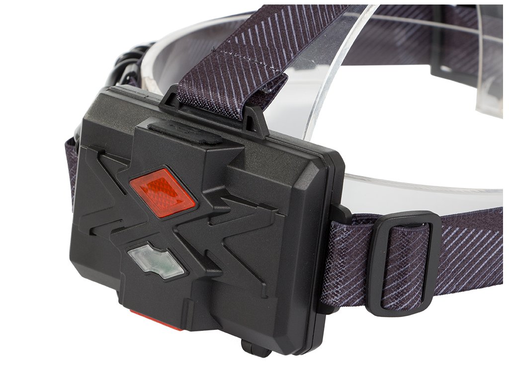 Svítilna na hlavě má nastavitelný úhel nahoru/dolů Její konstrukce zajišťuje stabilitu a zabraňuje sklouznutí svítilny z hlavy. Má také 2 pružné a nastavitelné popruhy.