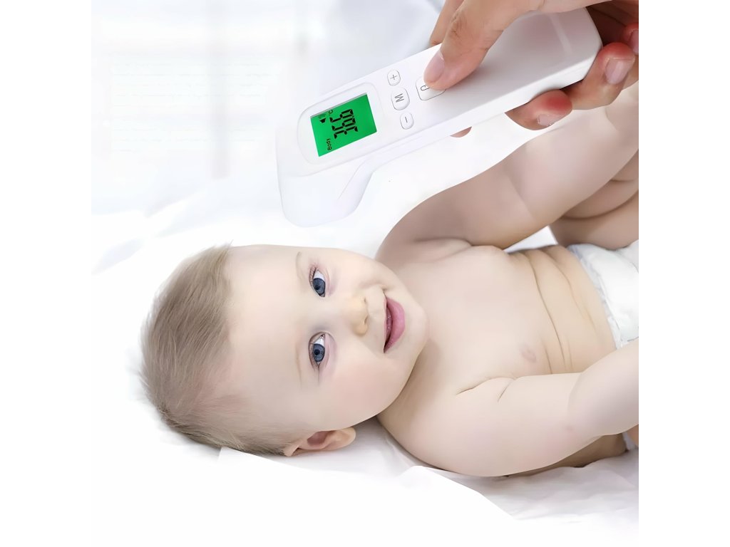 Elektronický bezkontaktní infračervený teploměr určený pro celou rodinu. Navržen speciálně pro měření tělesné teploty u malých dětí, je neuvěřitelně rychlý a neinvazivní. Teplota se měří za méně než 2 sekundy po přiložení přístroje na čelo. Vaše dítě si toho ani nevšimne, takže kontrola teploty je mnohem snazší. Je vybaven přehledným LCD displejem, který mění barvu v závislosti na teplotě, takže můžete snadno měřit teplotu svého dítěte i během spánku – bez zbytečného stresu a pláče. Neuvěřitelně jednoduchý a intuitivní na používání, je cenově dostupnou a pohodlnou alternativou ke standardním teploměrům!