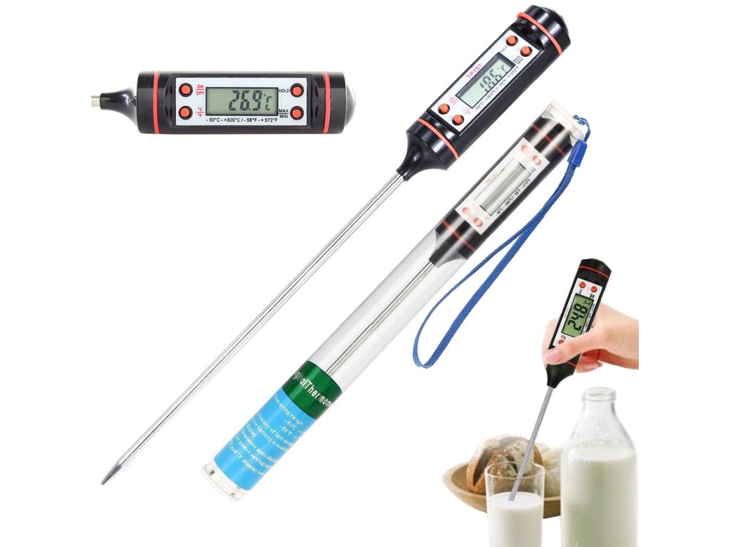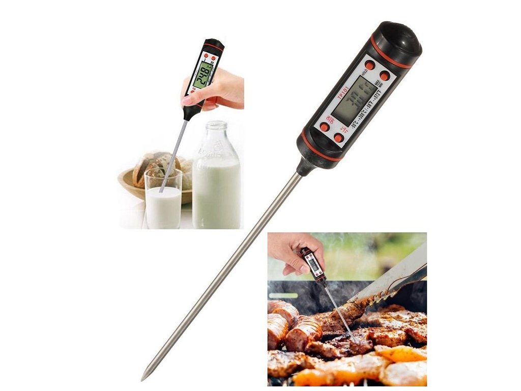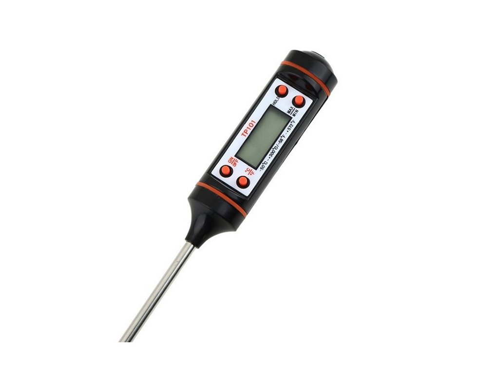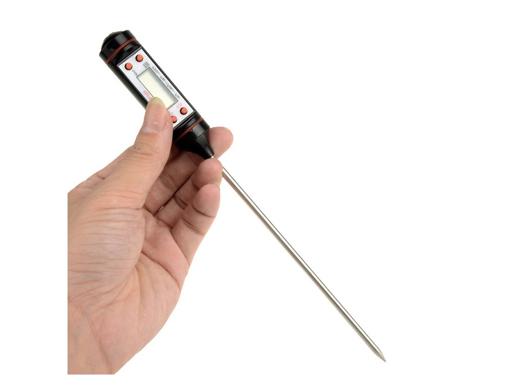 ElektronickýLCD teploměr se používá k měření teploty masa, tekutin, koláčů, grilů atd. Umožňuje pohodlně kontrolovat teplotu jakéhokoli výrobku. Je ideální v kuchyni při vaření ke kontrole teploty připravovaného pokrmu.
