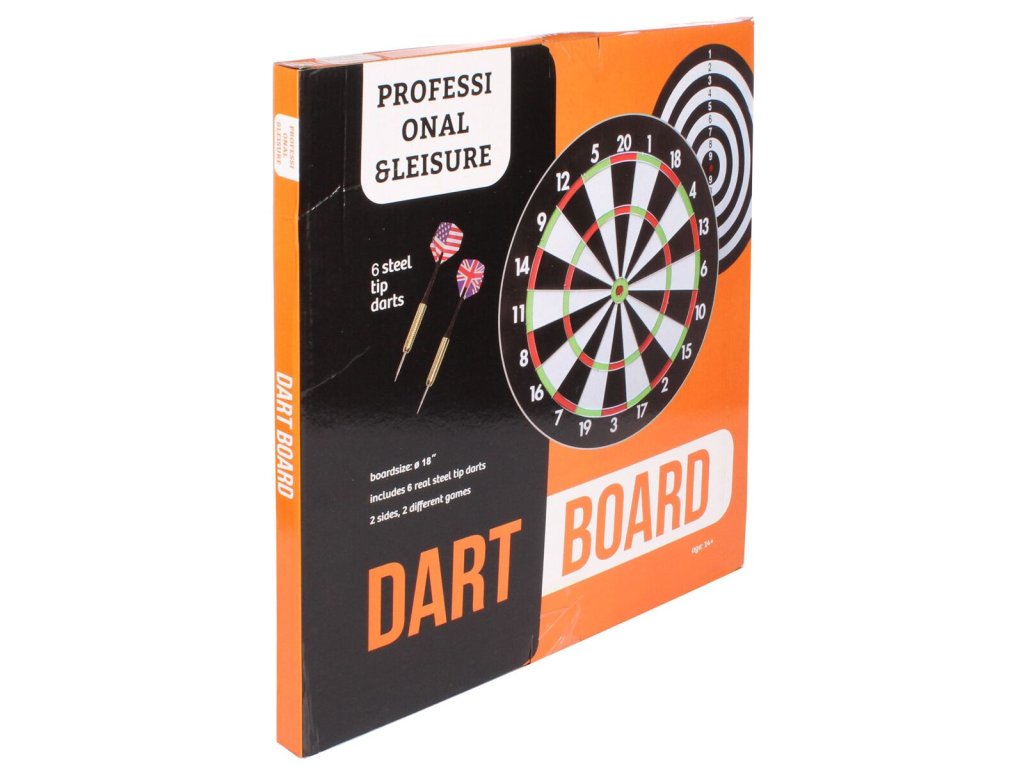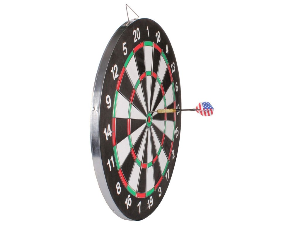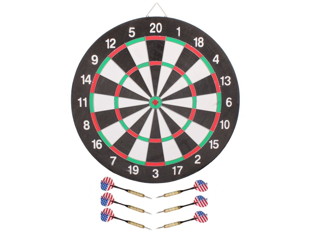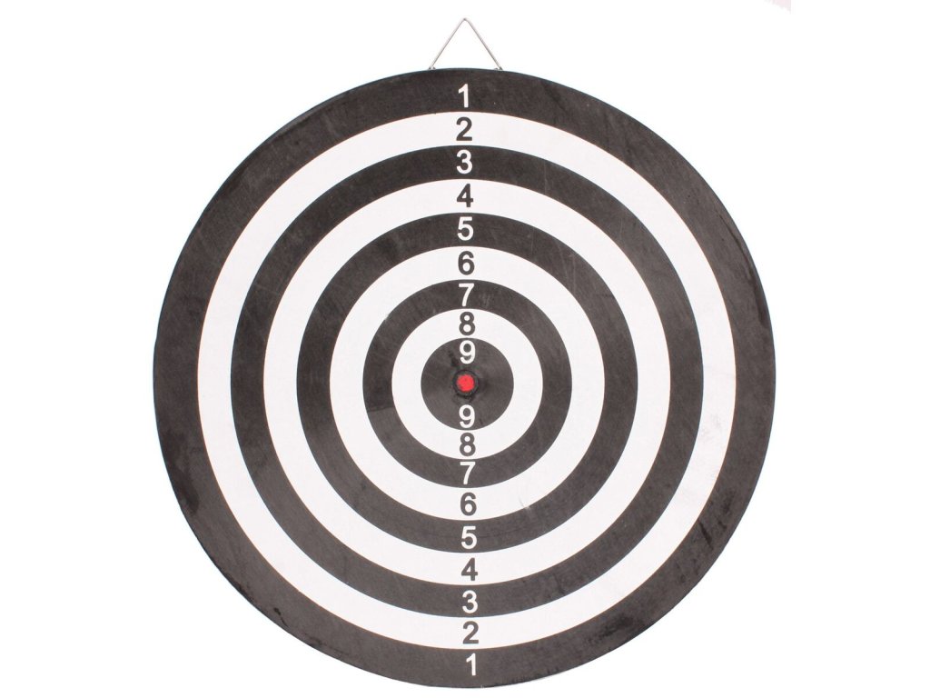 Oboustranný terč na šipky DB 45 je ideální terč pro začátečníky a rekreační hráče. Terč je vyrobený z mnohovrstvého lisovaného papíru s potiskem opatřeným kovovou konstrukcí. Rozměry terče jsou 43 x 2 cm. Na jedné straně je vyobrazený klasický terč s postranními čísly a ocelovými drátky. Druhá strana nabízí zjednodušenou černo-bílou verzi s bodováním od 1 - 9. Balení také obsahuje dvě sady šipek po třech kusech s ocelovými hroty. Soutěžte s kamarády o nejlepšího šipkaře se sadou DB 45. Parametry: - rozměry terče: 43 x 2 cm - obsah balení: 6x šipky, 1x terč - hmotnost balení: 2,3 kg - materiál: PE plast, železo, mnohovrstvý lisovaný papírDoplňkové parametry