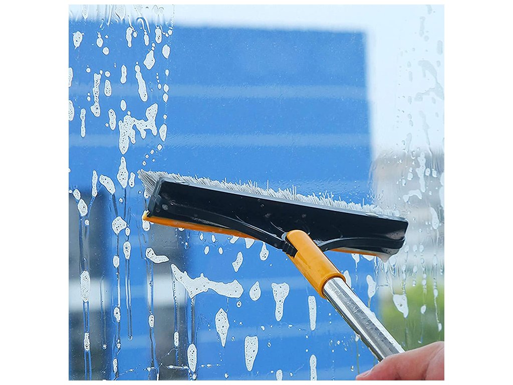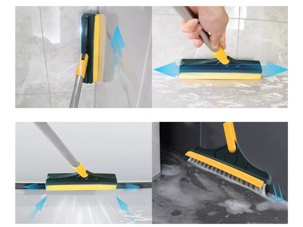 Kartáč má navíc stěrku na sklo nebo podlahy, která usnadňuje sběr vody.