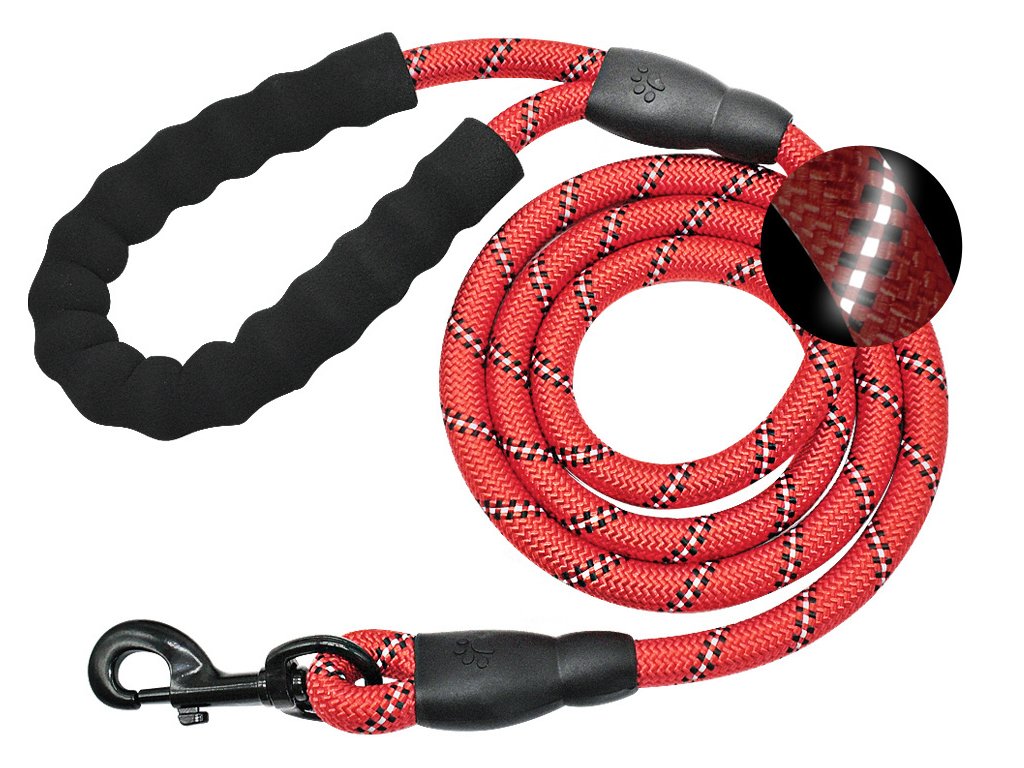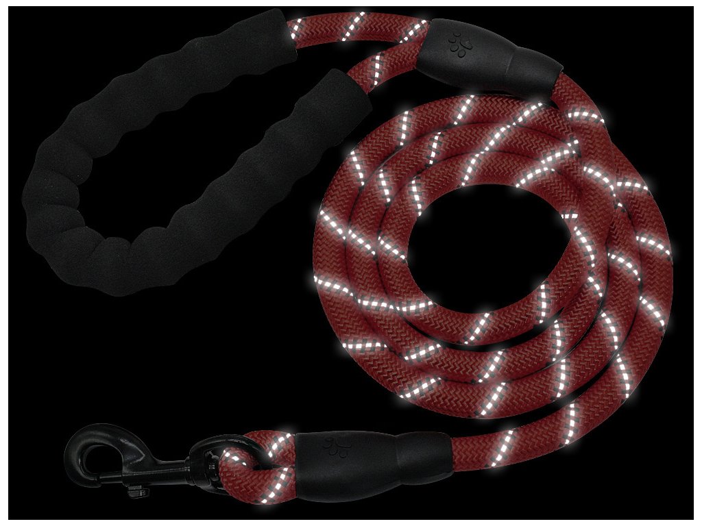 Silné lano je vyrobeno ze silného pevného materiálu o šířce 1 cm . Vodítko je navíc opatřeno reflexními pruhy zvyšujícími bezpečnost našeho mazlíčka, zejména v místech se sníženou viditelností.
