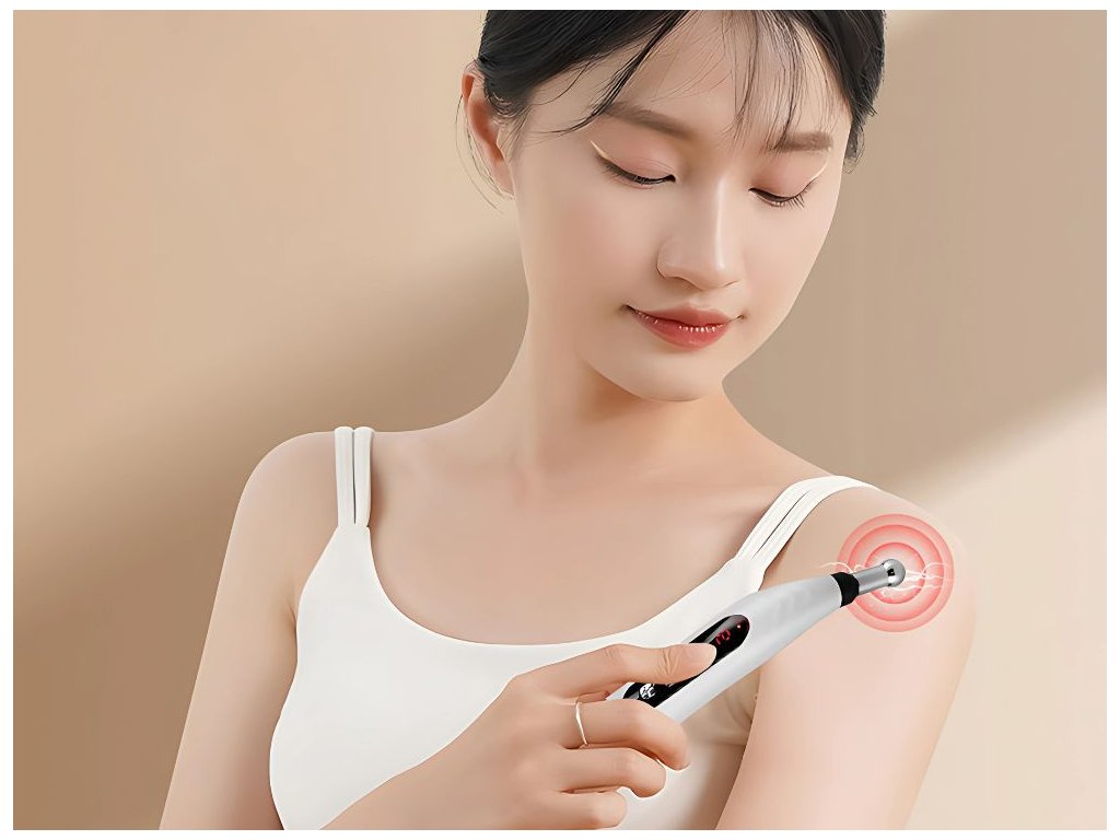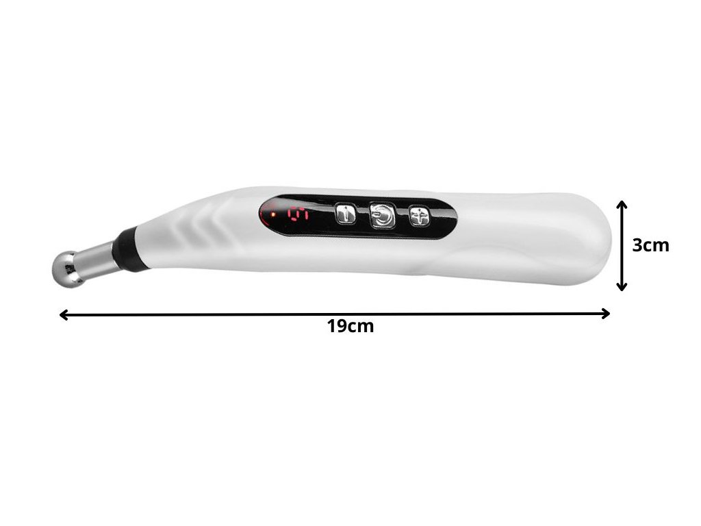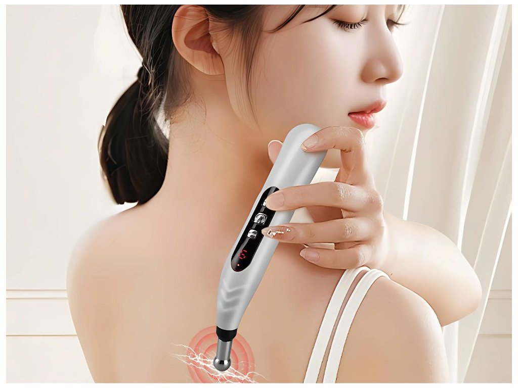 Akupunkturní pero lze použít na ramena, záda, krk, nohy a dokonce i na ruce. Skvěle se hodí při svalovém napětí, stresu, migrénách nebo bolestech kloubů. Vestavěný LCD displej usnadňuje ovládání intenzity a ergonomický design umožňuje pohodlné používání jednou rukou.