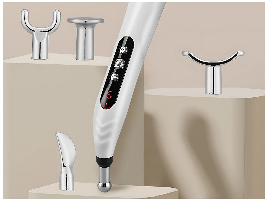 AKUPUNKTURNÍ MASÁŽNÍ PERO ELEKTROSTIMULÁTOR 5 TIPŮ LCD SET