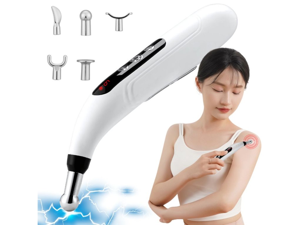 Praktické a snadno použitelné masážní pero je přístroj pro elektrostimulaci akupunkturních bodů. Využívá nízkofrekvenční elektrické impulzy ke stimulaci svalů, zlepšení krevního oběhu a snížení napětí. Ideální pro domácí terapii bolesti, relaxační masáž nebo zlepšení regenerace po cvičení.