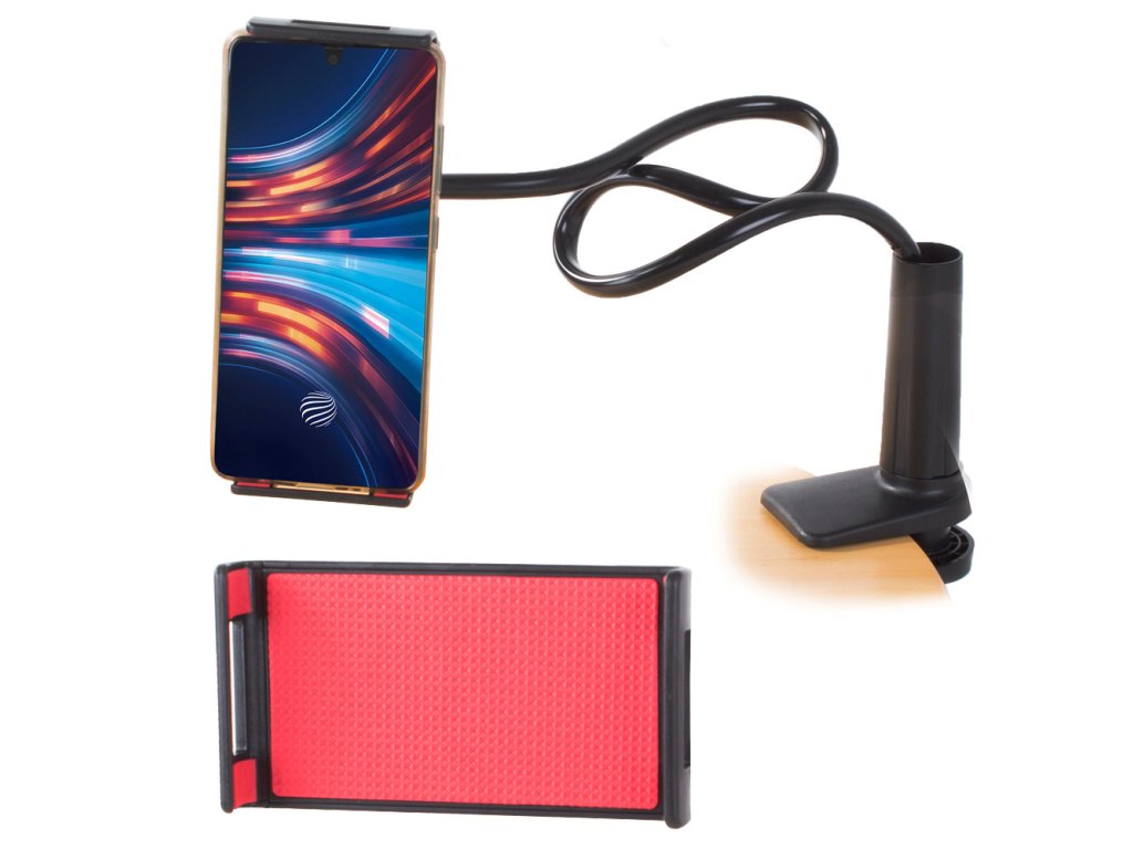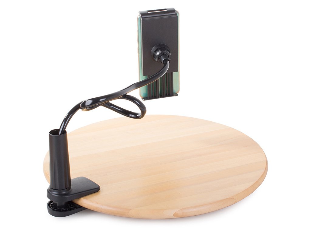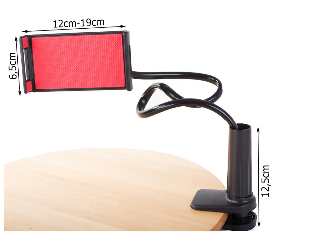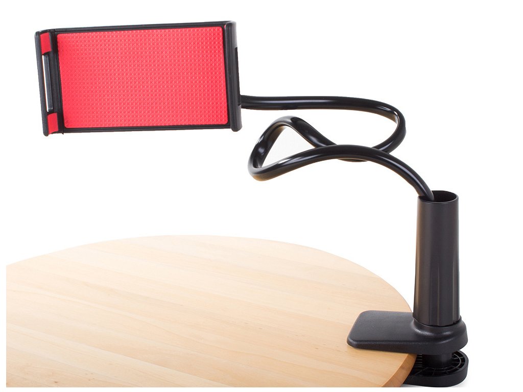Vysoce kvalitní držák na telefon, ipod nebo tablet. Připevňuje se na rovný povrch (stůl/deska). Telefon lze umístit vertikálně i horizontálně .