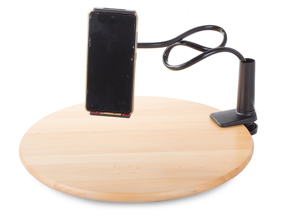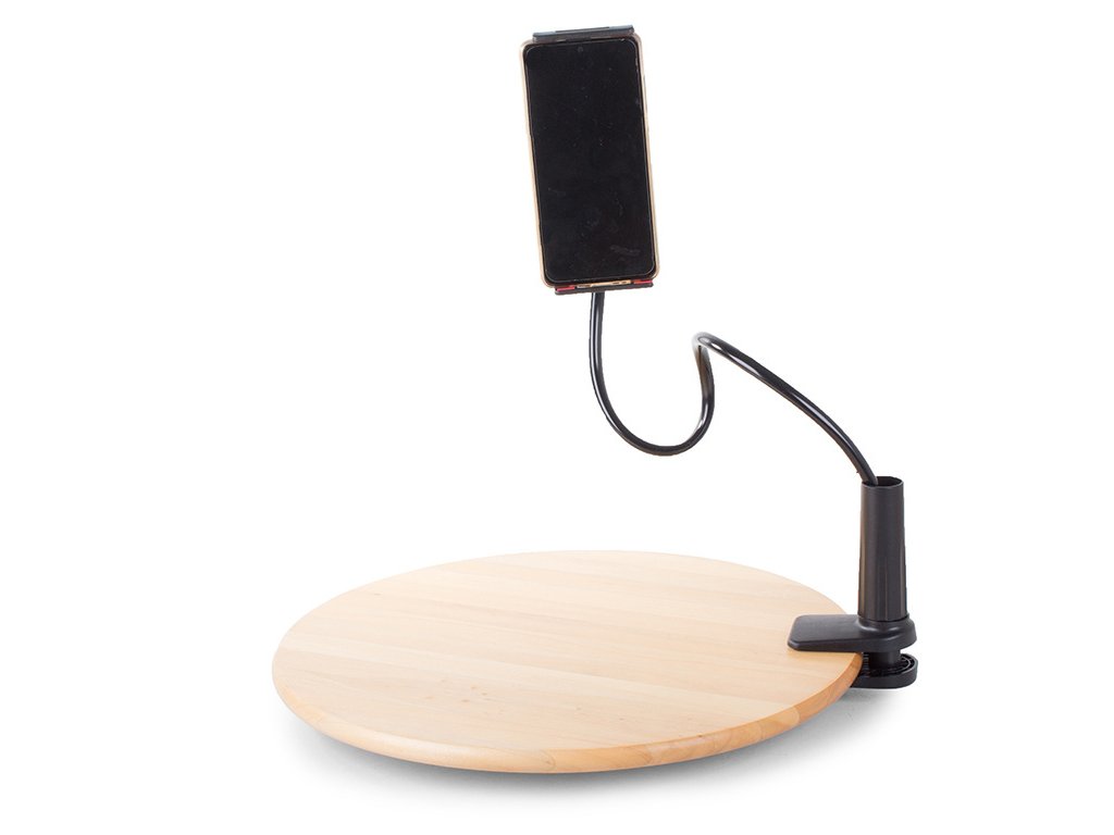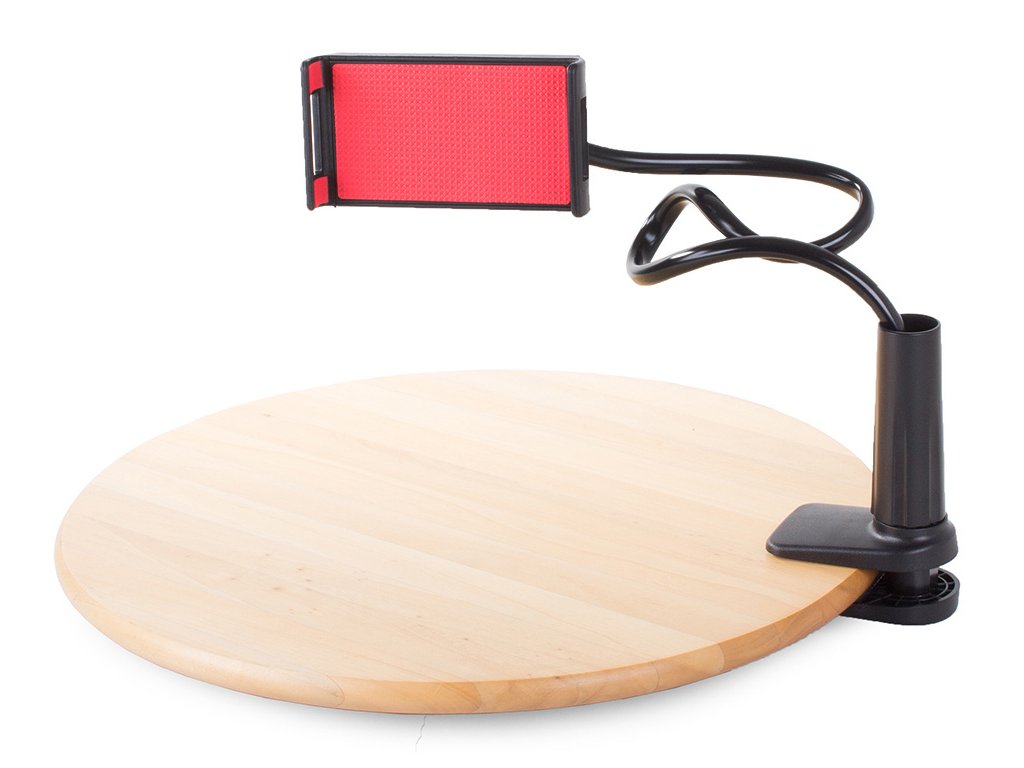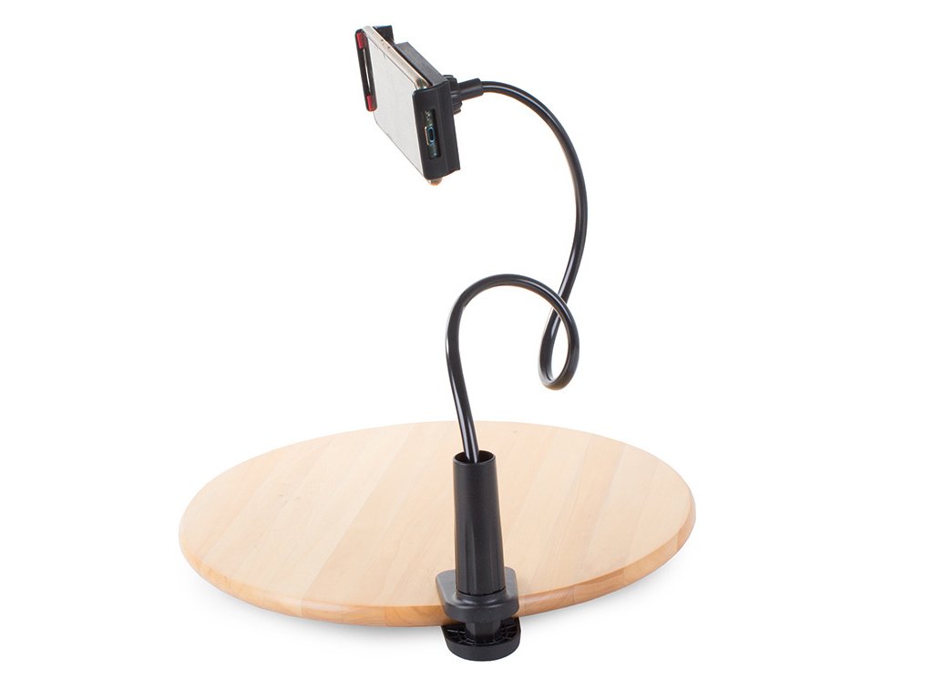 Vysoce kvalitní držák na telefon, ipod nebo tablet. Připevňuje se na rovný povrch (stůl/deska). Telefon lze umístit vertikálně i horizontálně .