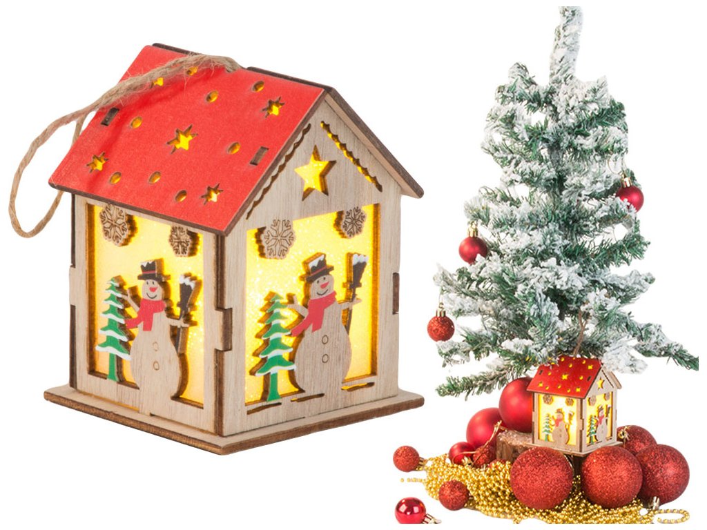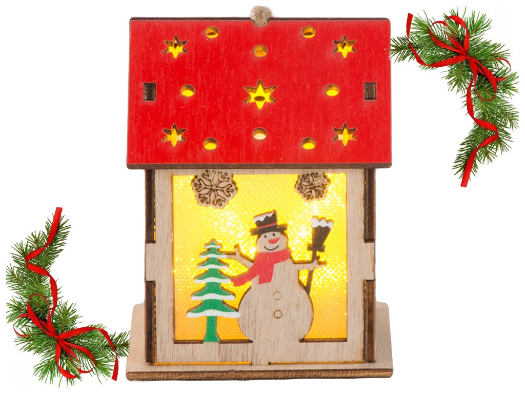 DŘEVĚNÁ ZÁVĚSNÁ LUCERNA PRO OSVĚTLENÍ VÁNOČNÍHO STROMKU VÁNOČNÍ DEKORACE SNĚHULÁK