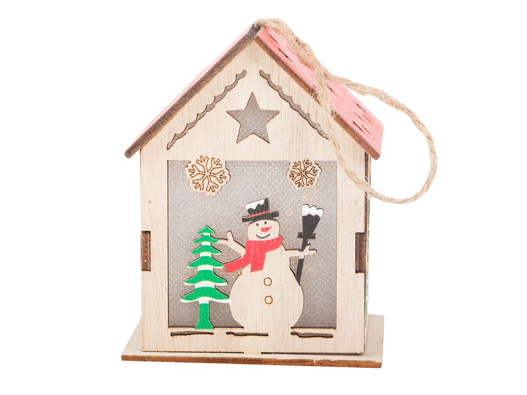 Dřevěná závěsná lucerna osvětlení vánočního stromku vánoční dekorace sněhulák