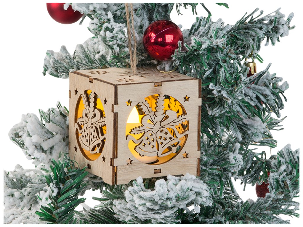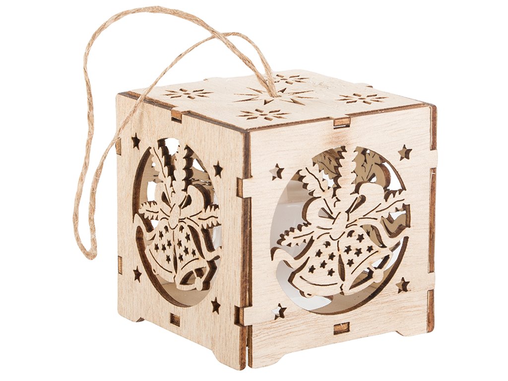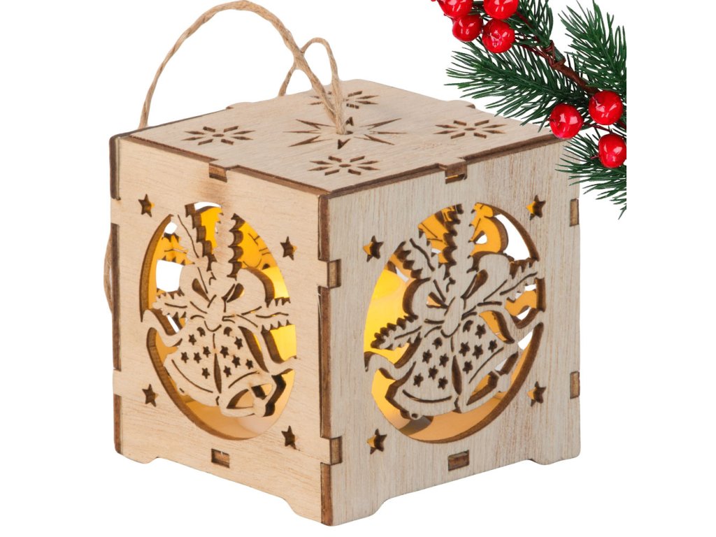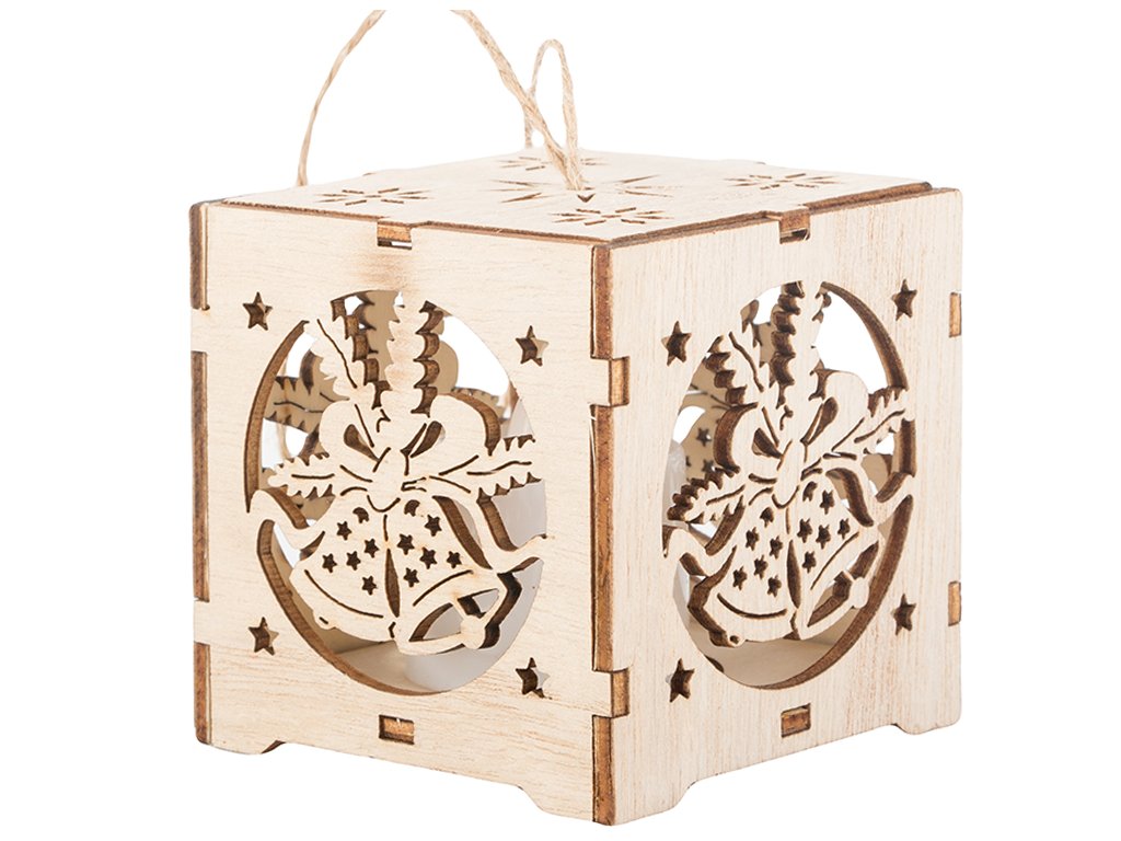Dřevěná závěsná lucerna osvětlení vánočního stromku vánoční ozdoba zvonky