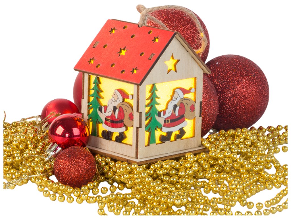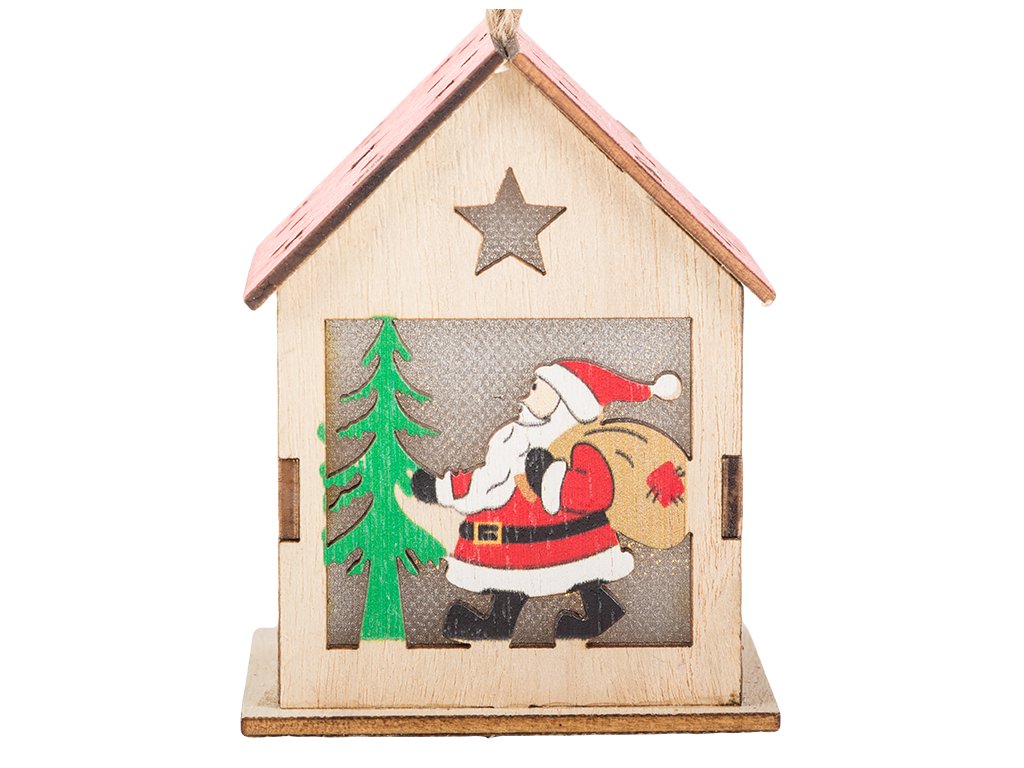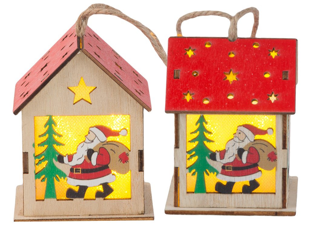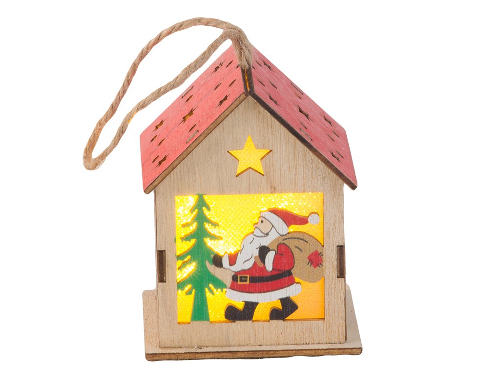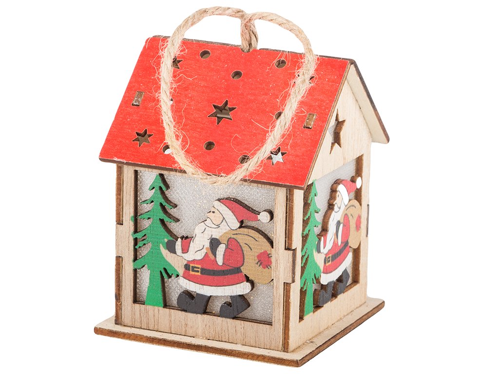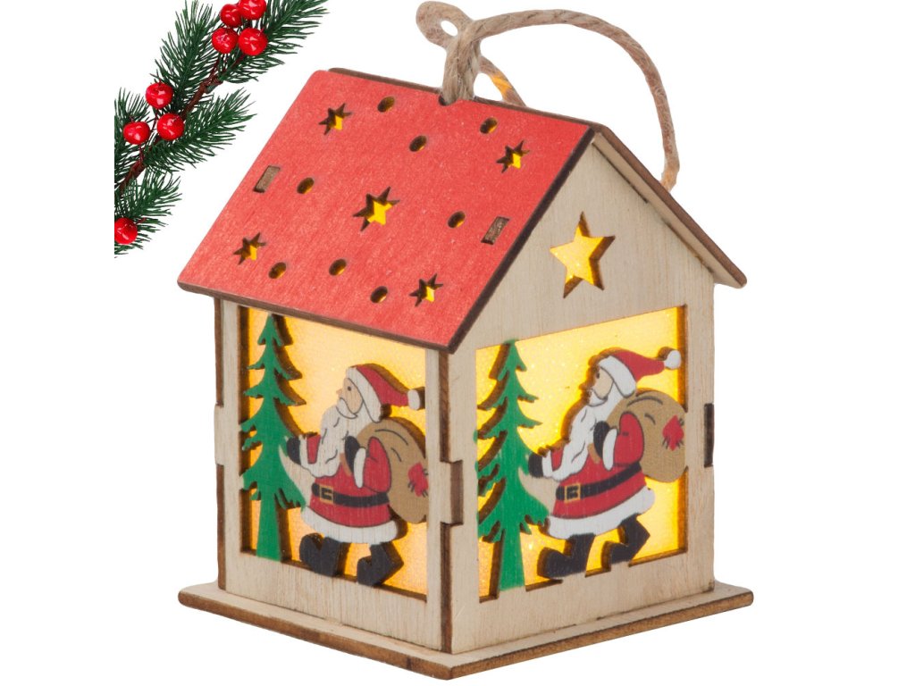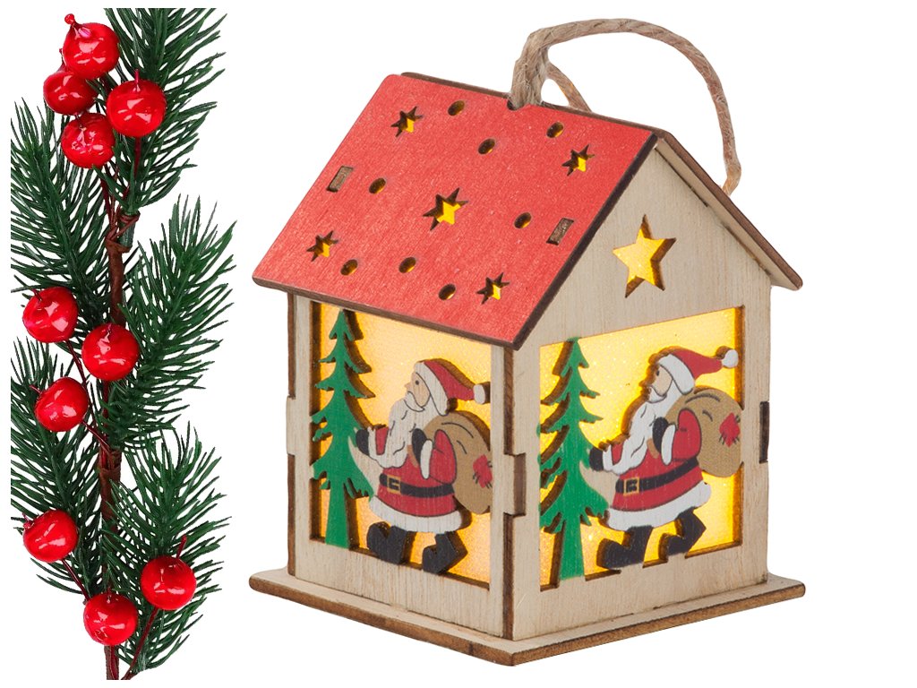 DŘEVĚNÁ ZÁVĚSNÁ LUCERNA PRO OSVĚTLENÍ VÁNOČNÍHO STROMKU VÁNOČNÍ DEKORACE SANTA CLAUS