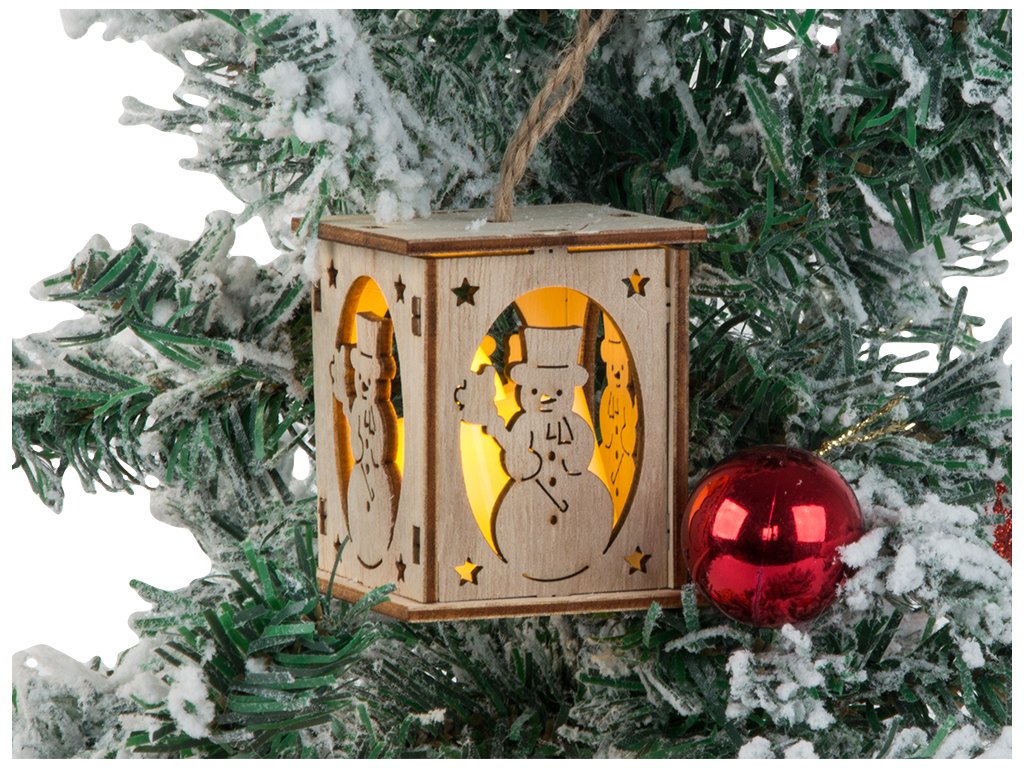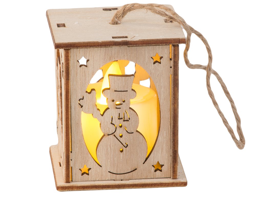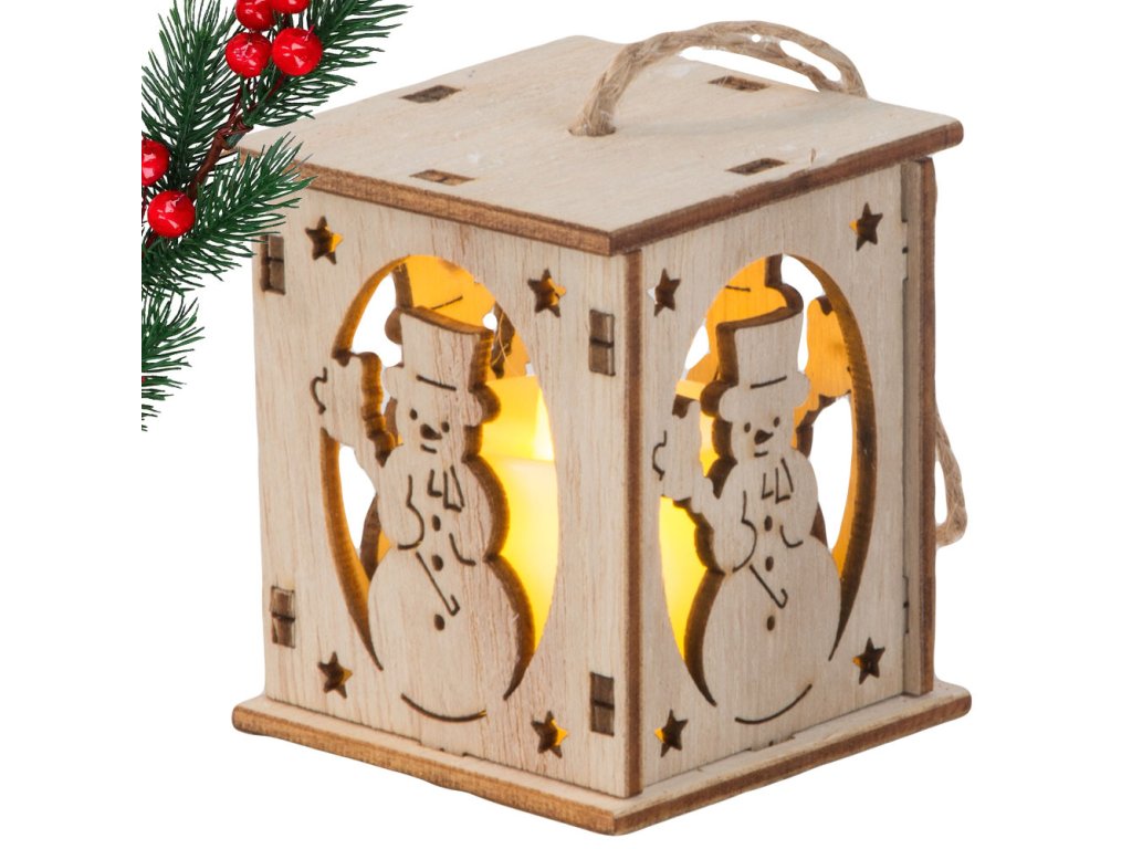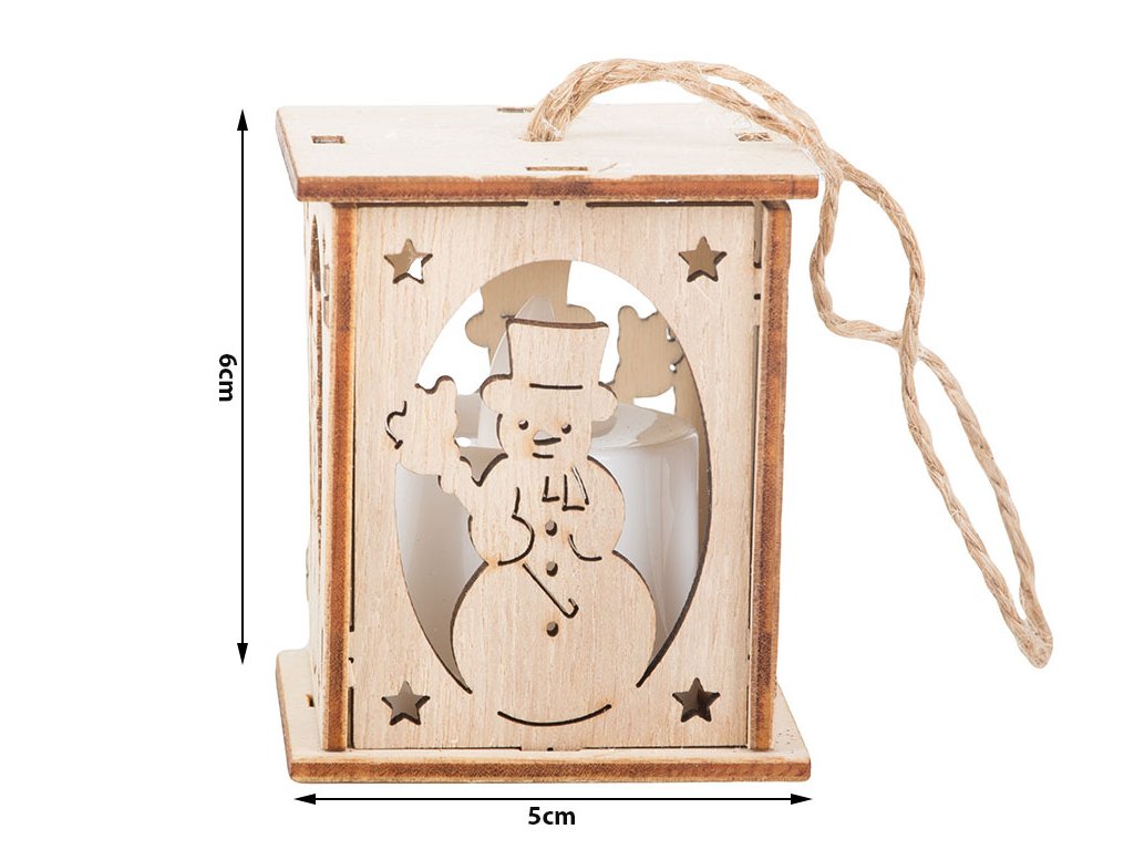 DŘEVĚNÝ ZÁVĚSNÝ VÁNOČNÍ STROMEK LUCERNA OSVĚTLENÍ VÁNOČNÍ DEKORACE SNĚHULÁK