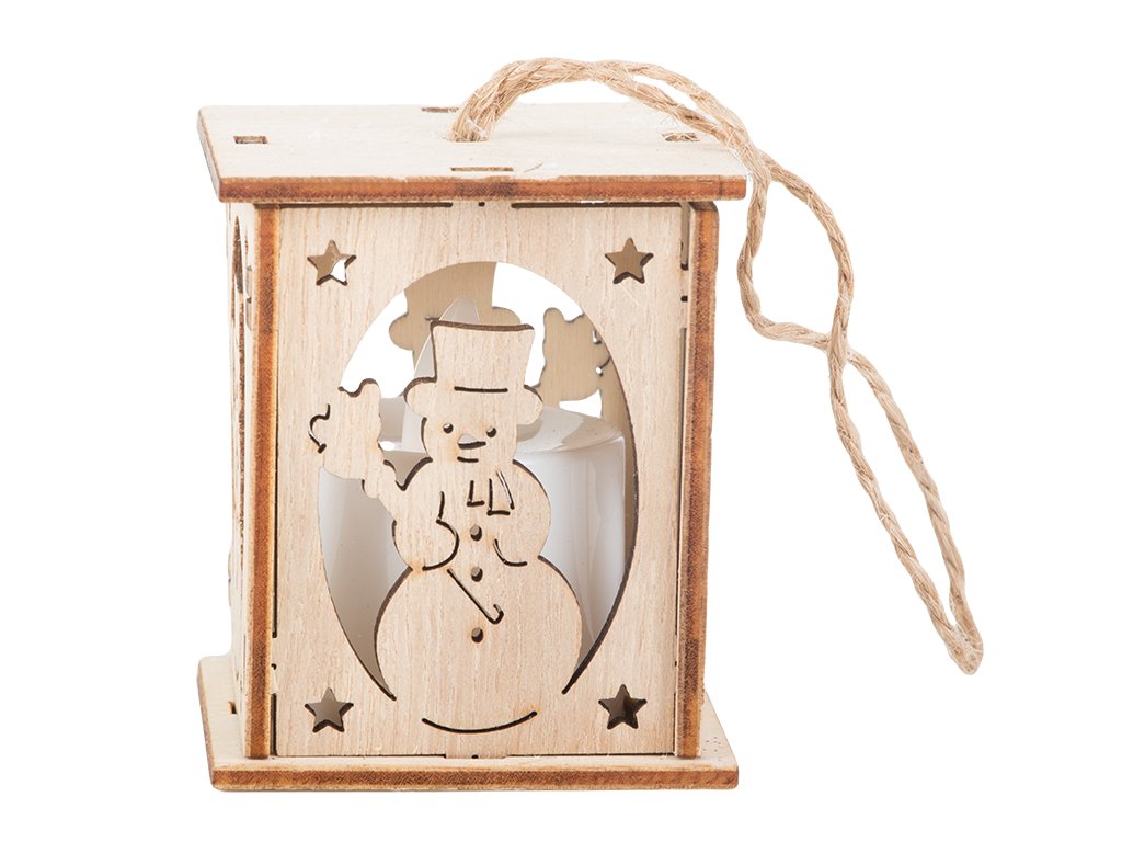 Dřevěný závěsný vánoční stromek lucerna osvětlení vánoční dekorace sněhulák