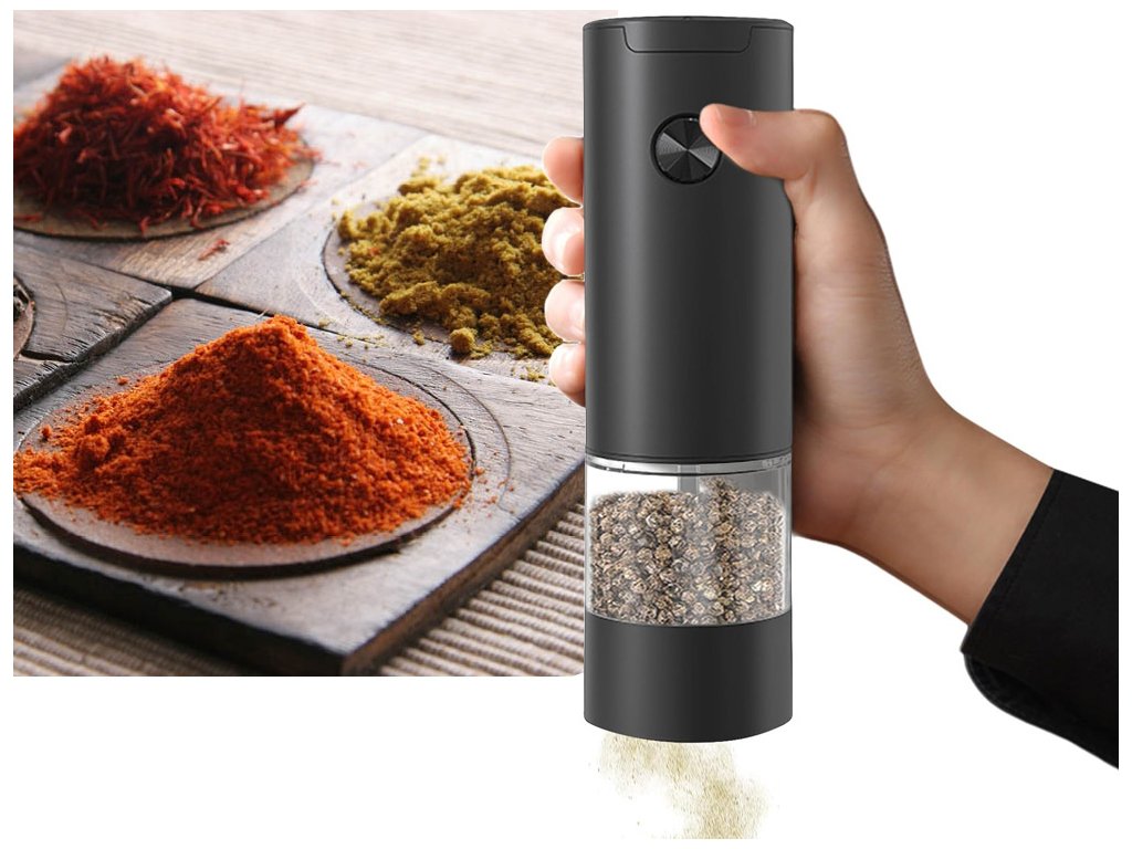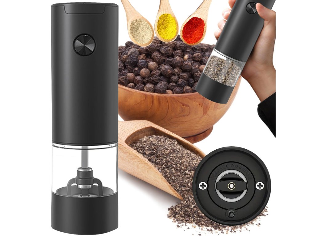 ELEKTRICKÝ MLÝNEK NA SŮL A PEPŘ S NASTAVITELNOU HRUBOSTÍ.