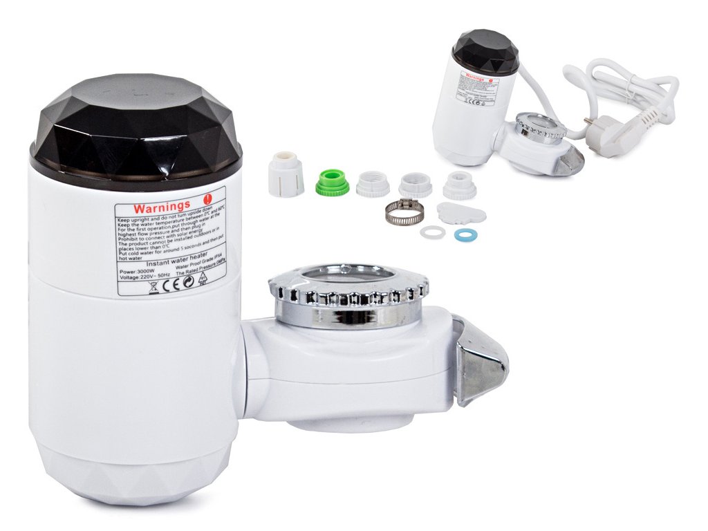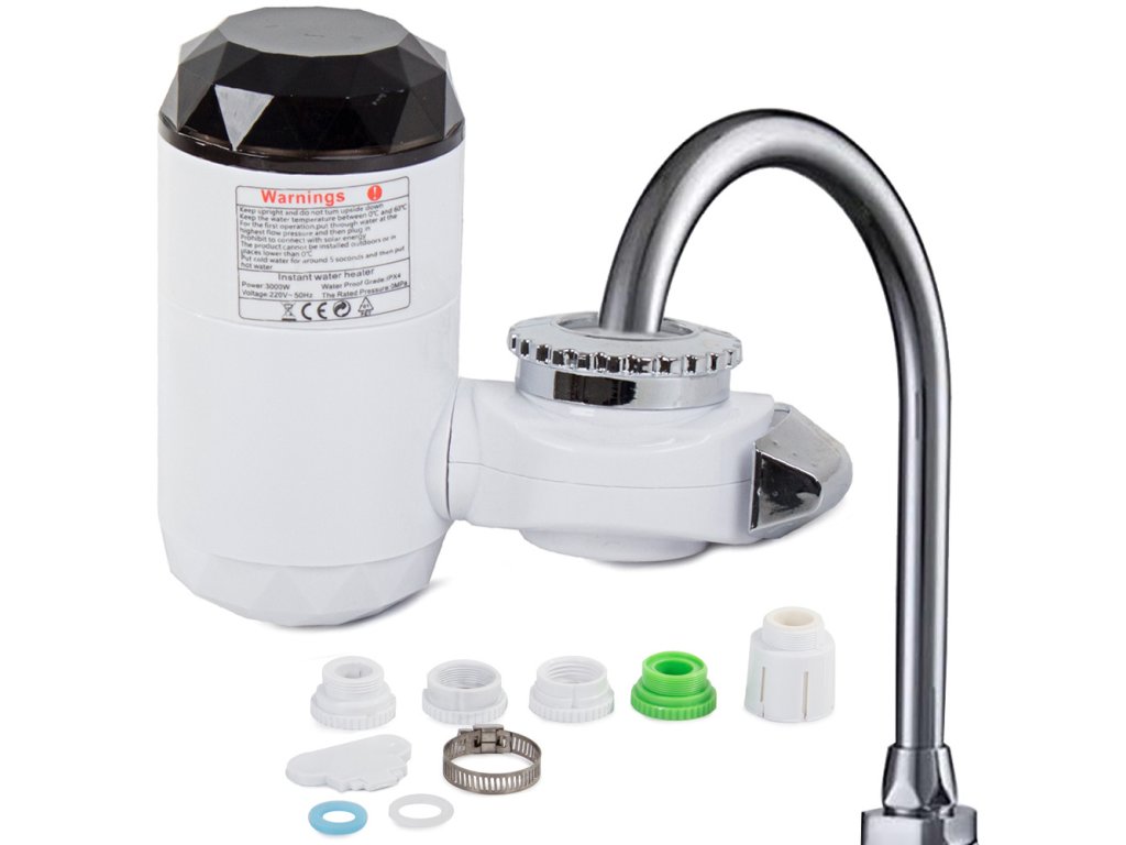 Vodovodní baterie s ohřívačem vody sesnadno instaluje. Součástí sady je pět adaptérů, jejichž velikost lze upravit tak, aby vyhovovala vodovodní baterii. Zařízení ohřívá vodu velmi rychle. Během několika sekund je voda ohřátá na teplotu 30-60 stupňů.