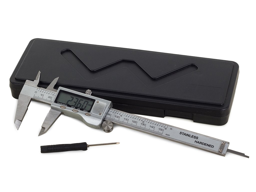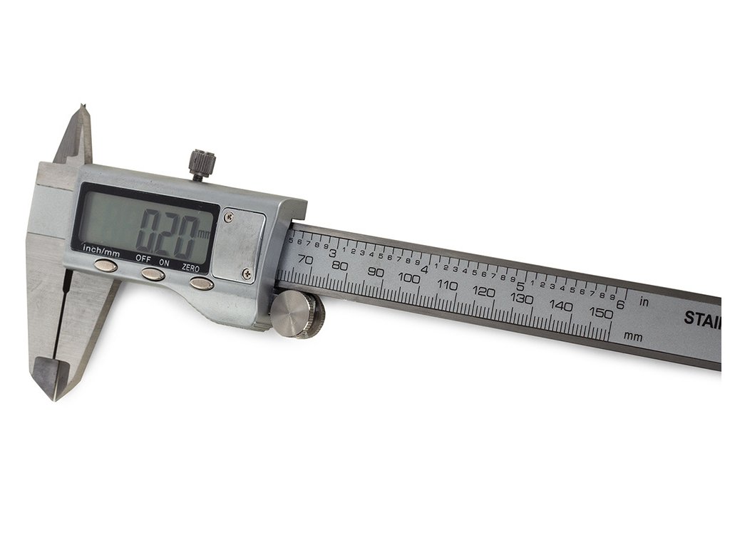Elektronické měřítko s pozoruhodnou přesností na setiny milimetru.