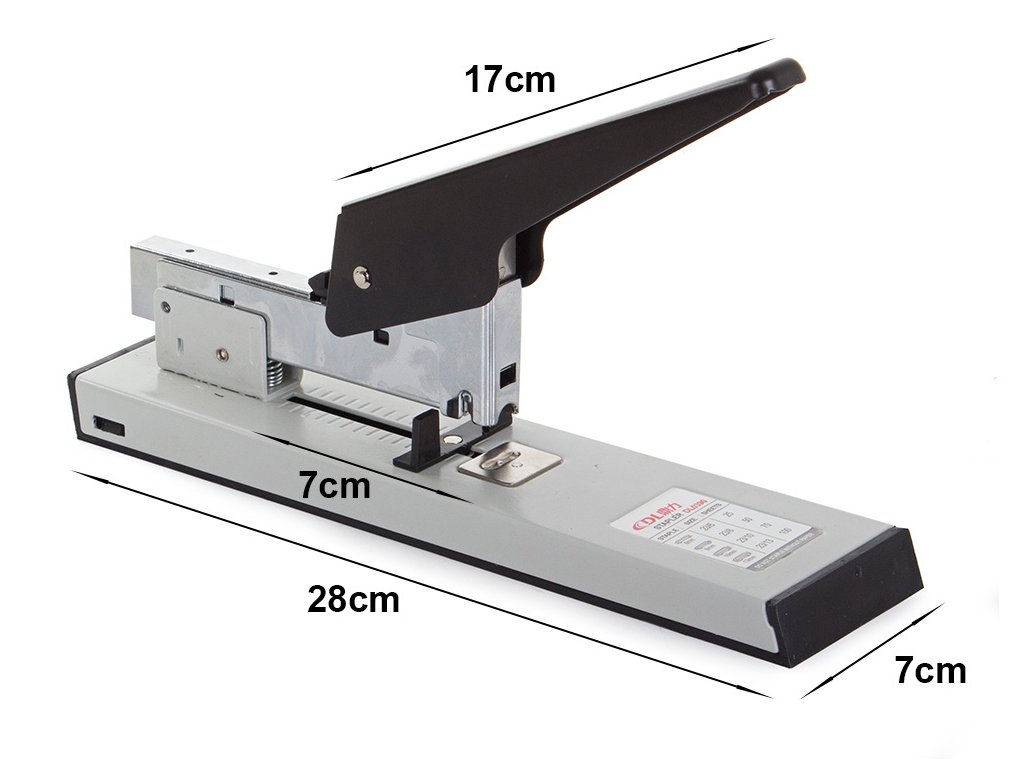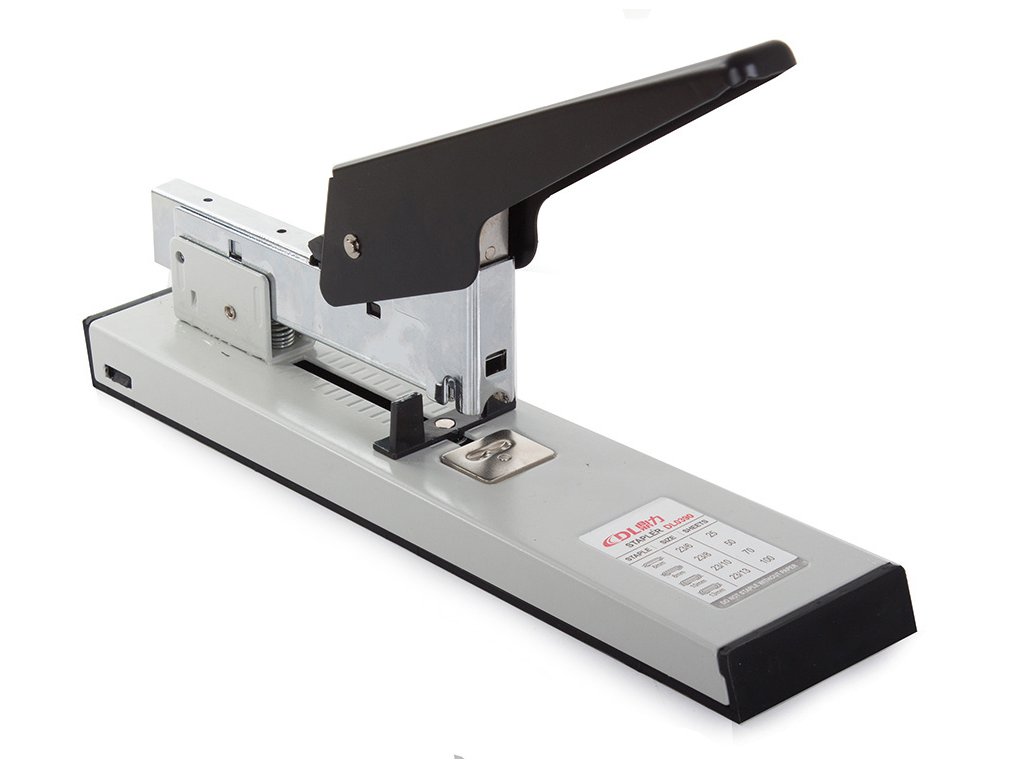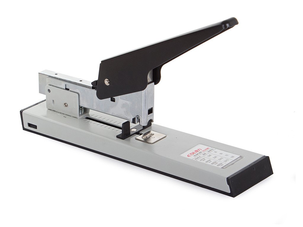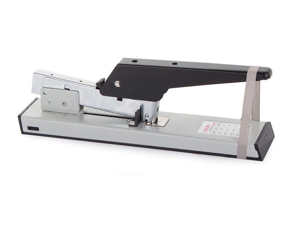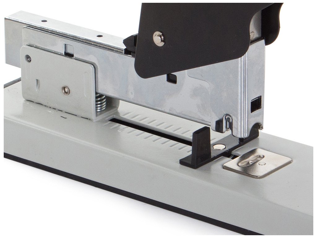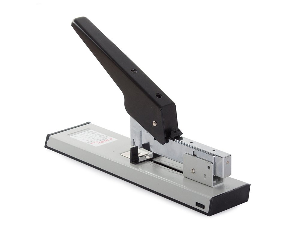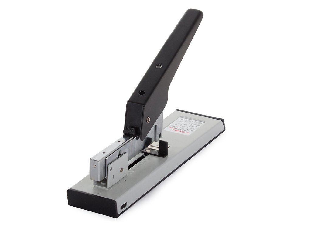Pohodlná kancelářská sešívačka, sešívá 100 listů papíru najednou. Dlouhé robustní rameno snižuje nutnost použití velkého přítlaku.