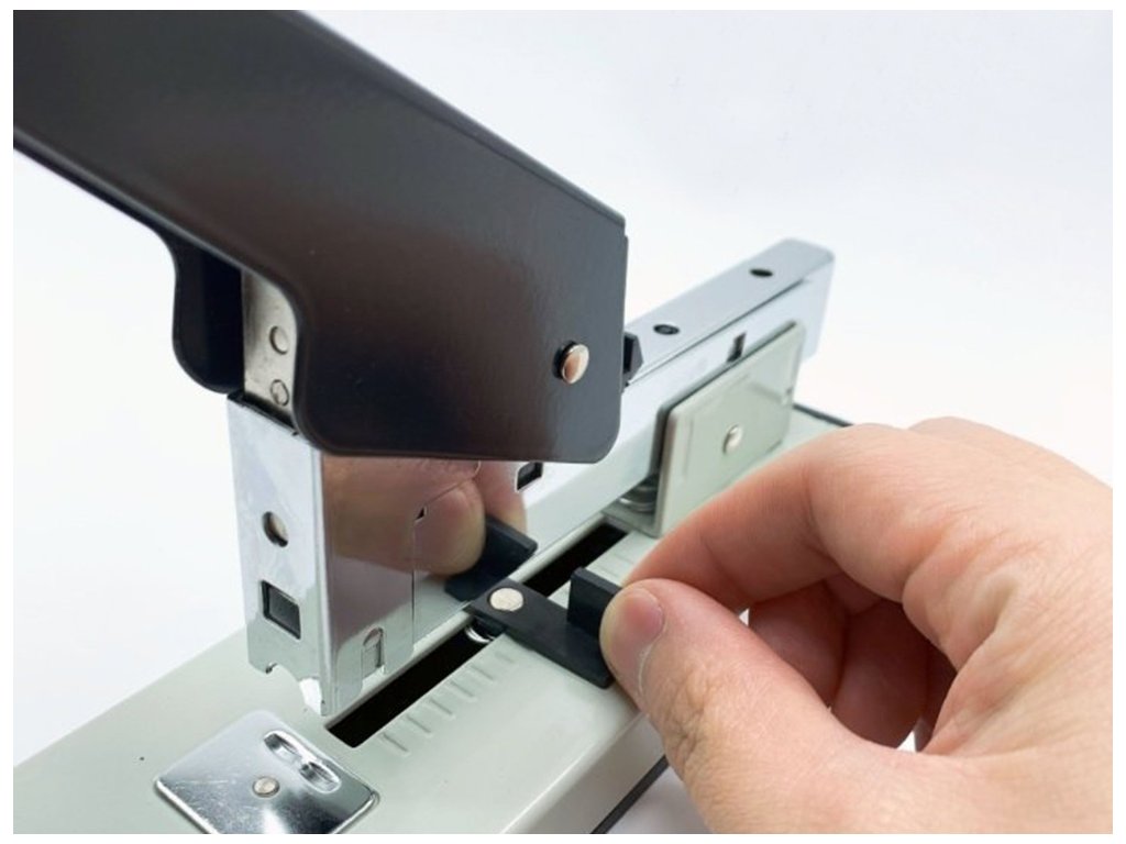 Je vybavena nastavitelnou hloubkou okraje, což vám dává možnost vkládat listy na 7 cm. Sešívačka má protiskluzovou základnu, takže se při sešívání listů nepohybuje.