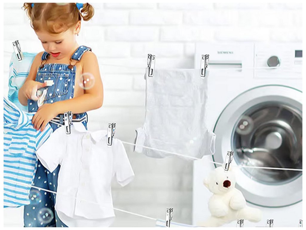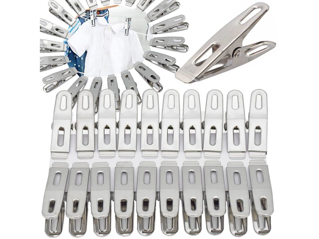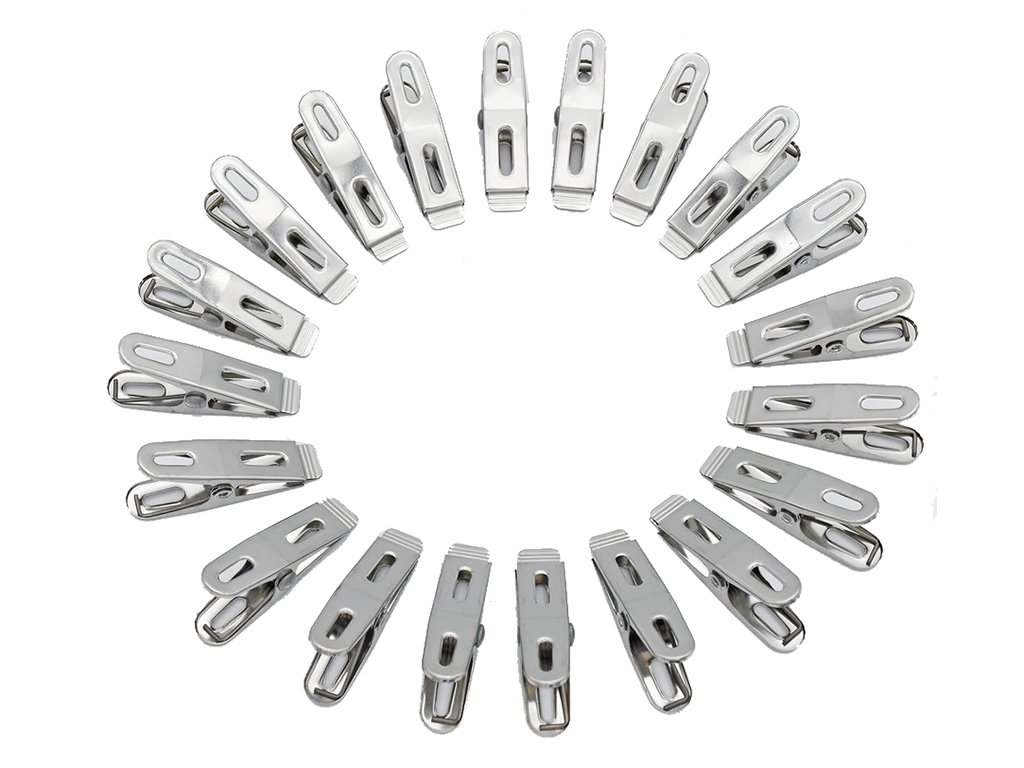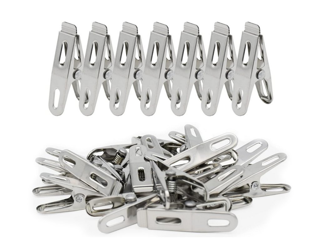 Praktické a odolné kovové klipy, ideální pro věšení prádla a oděvů na sušák nebo šňůru na prádlo.