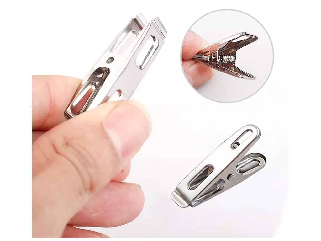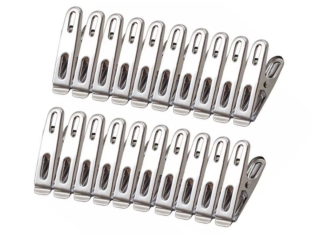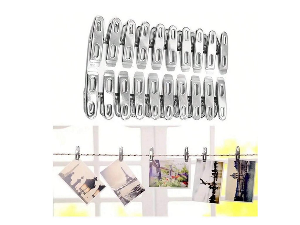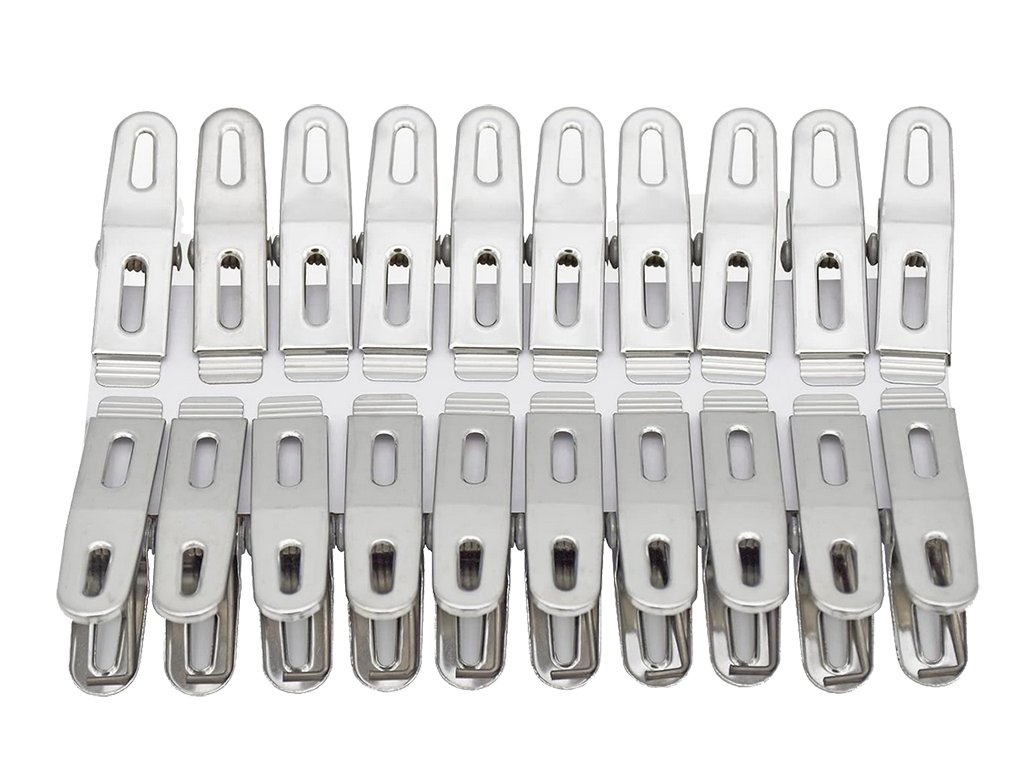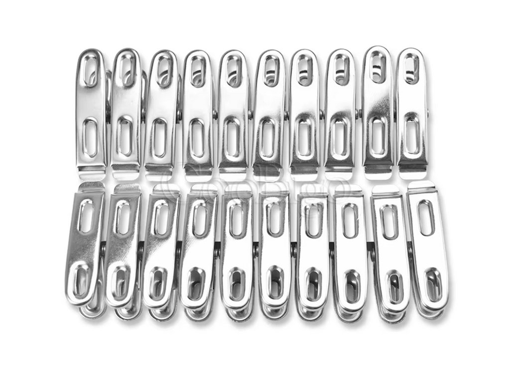 Praktické a odolné kovové klipy, ideální pro věšení prádla a oděvů na sušák nebo šňůru na prádlo.