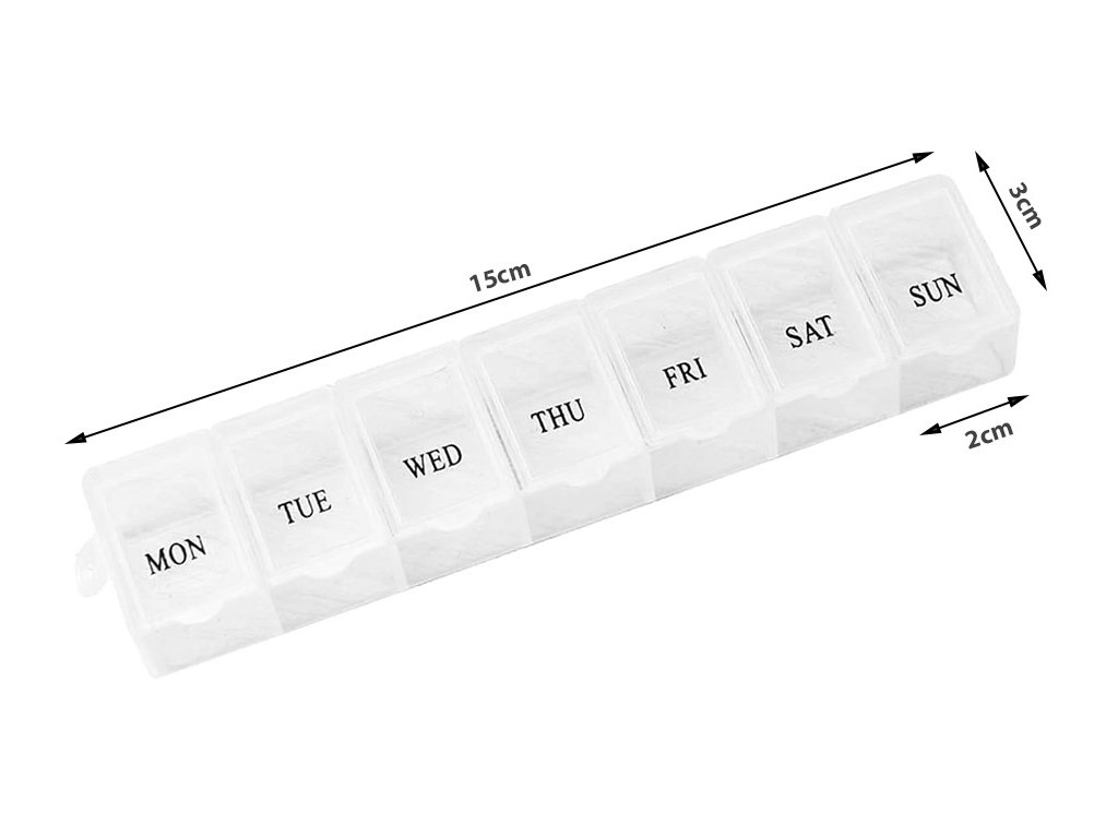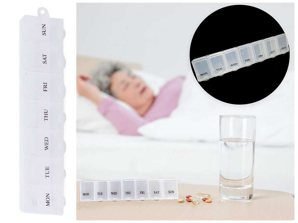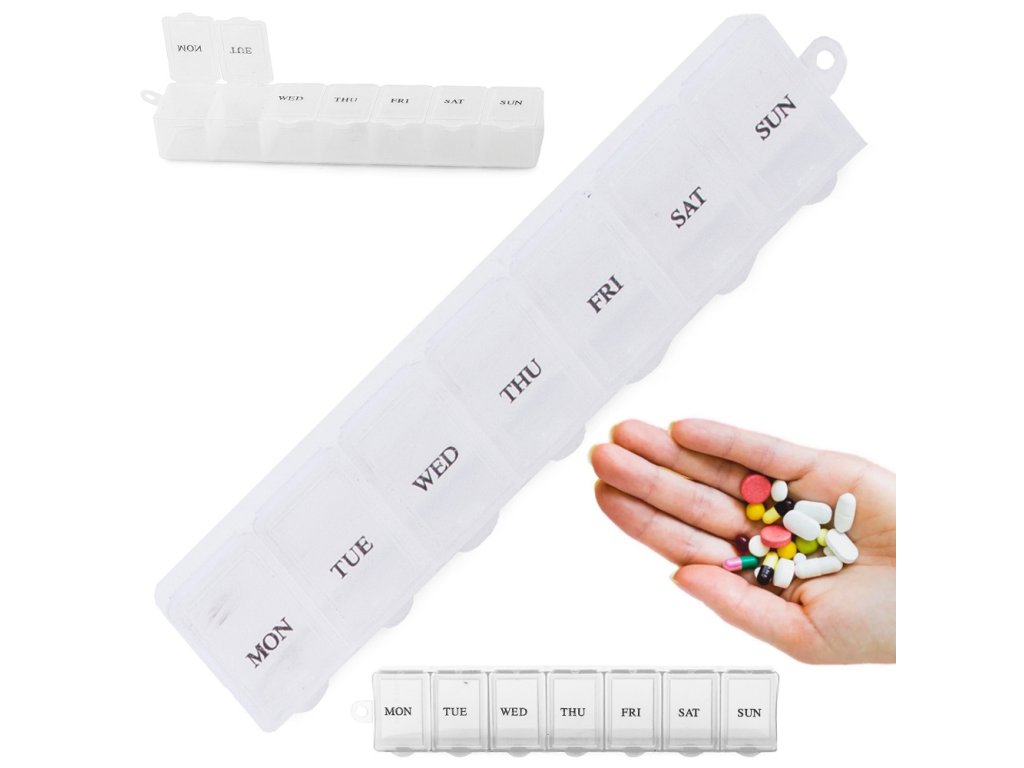 Týdenní zásobník na léky je sada sedmi plastových krabiček v jedné společné kazetě. Ideální řešení pro přípravu léků na celý týden, zejména pro chronicky nemocné osoby.