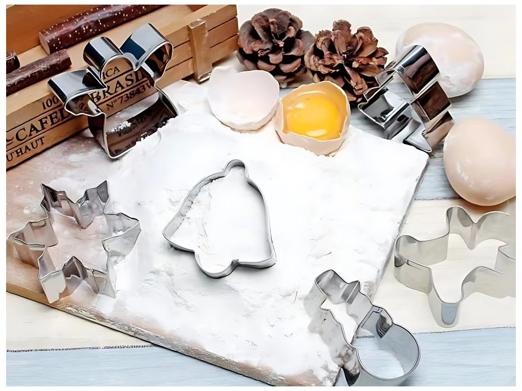 SADA 6 KUSŮ VÁNOČNÍCH PERNÍKOVÝCH FOREM Z OCELI