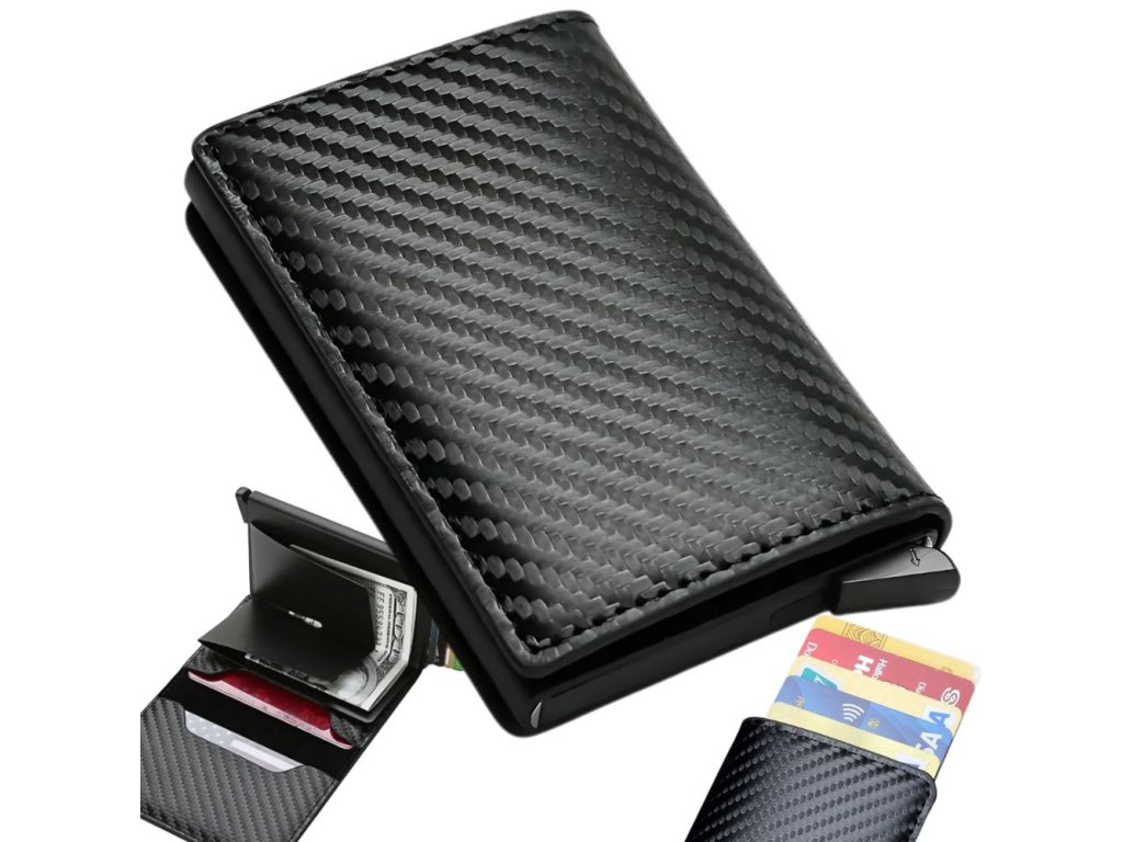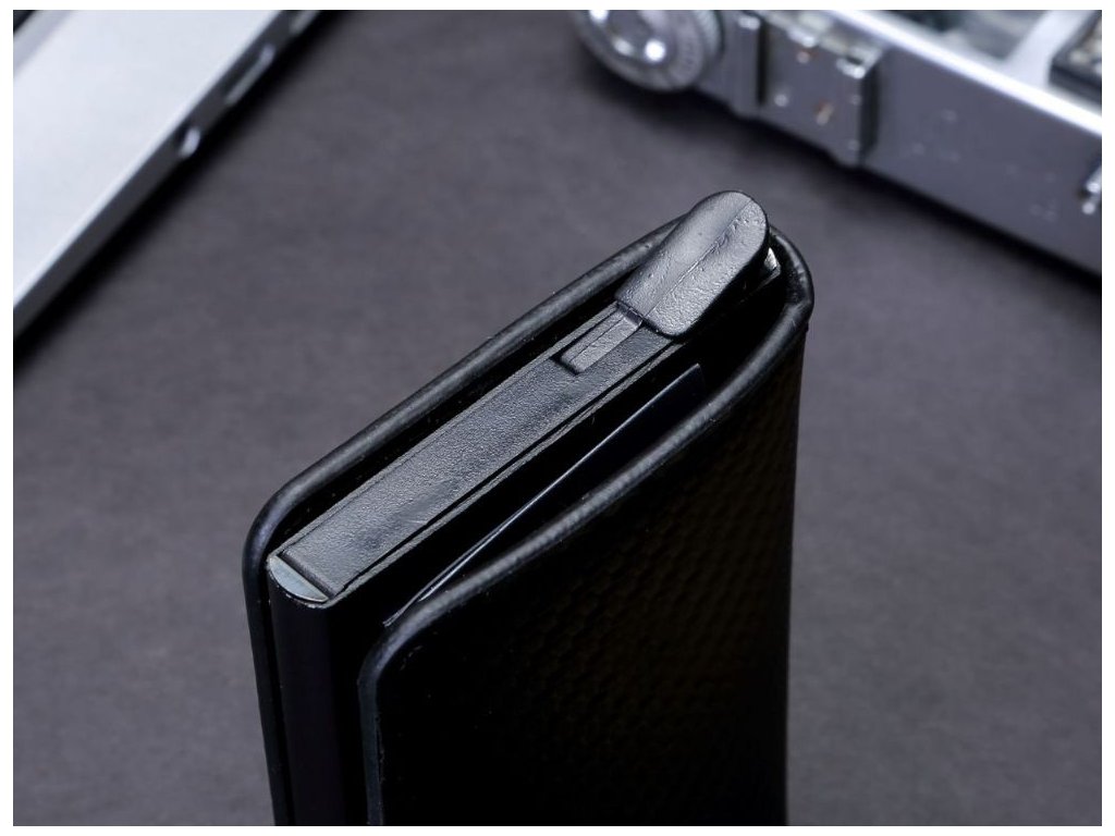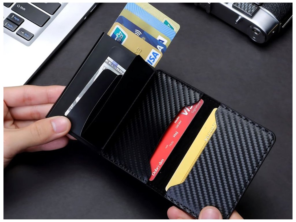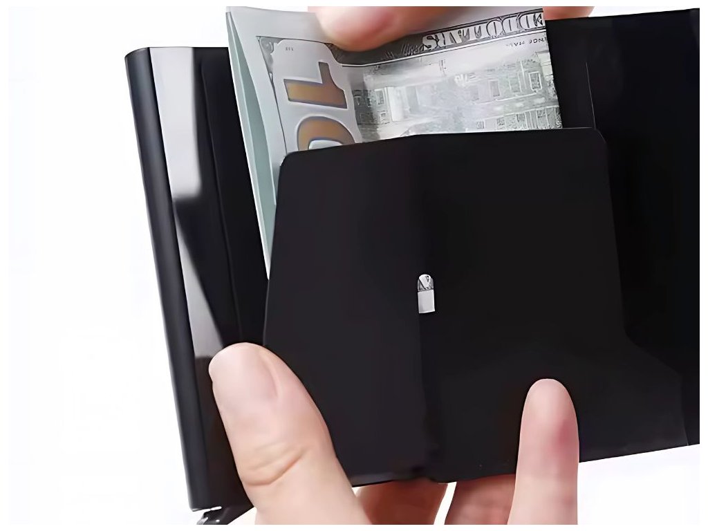 Peněženka je vybavena speciálním mechanismem pro rychlé vysunutí karet na jedno kliknutí. Uvnitř najdete přihrádky na bankovky, doklady a další kapsy na karty, což vám umožní udržet si pořádek a mít rychlý přístup k nejnutnějším věcem.