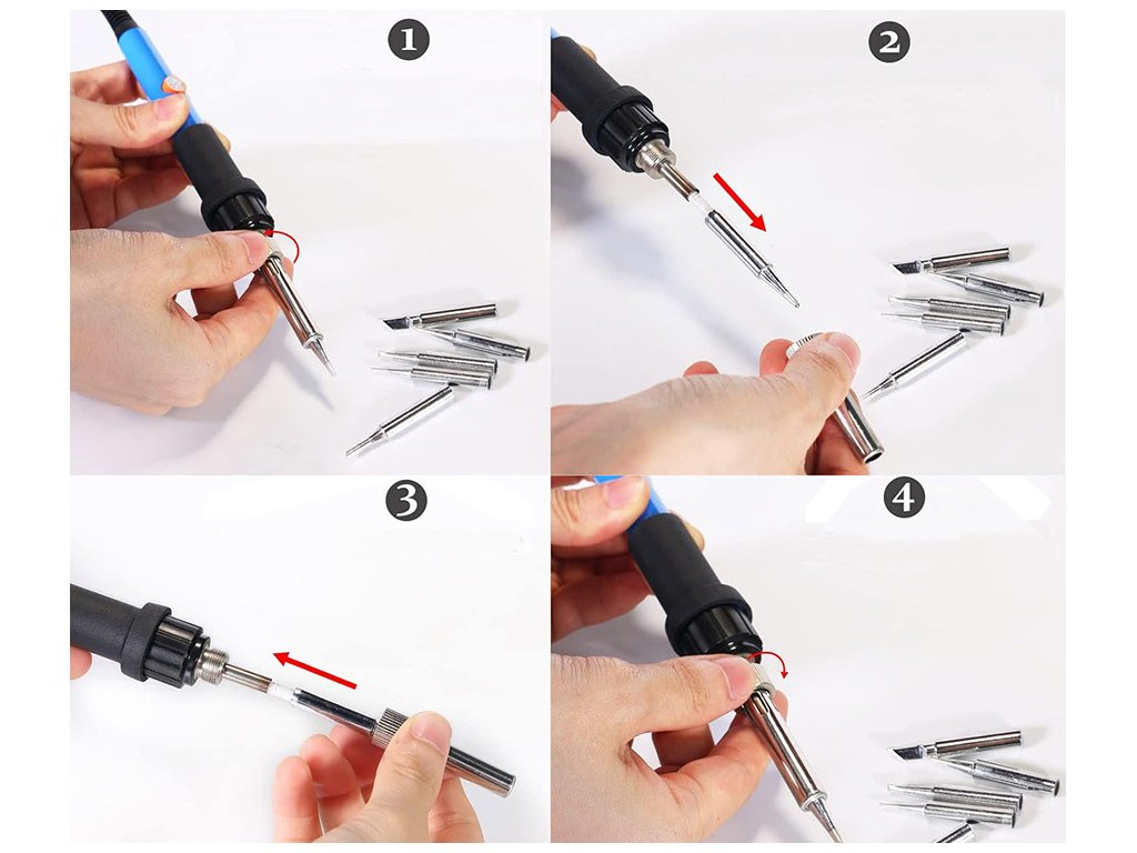 Díky sadě 6 různých hrotů můžete páječku přizpůsobit specifikům každého úkolu. Bez ohledu na velikost nebo tvar najdete ideální hrot pro přesnou práci.