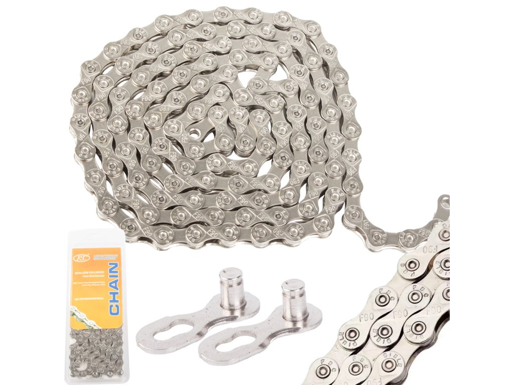 Cyklistický řetěz ve standardu 1/2x3/32, určený pro jízdní kola s 6, 7 nebo 8rychlostním pohonem. Řetěz je vyroben z odolných materiálů a zajišťuje hladký a účinný přenos síly na zadní kolo, což se projevuje v jízdním komfortu a přesnosti.
