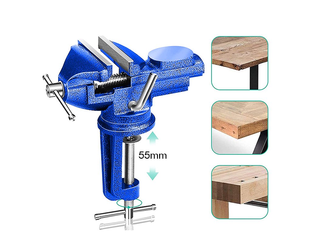 Svěrák pro obrábění železa bude v našich dílnách velmi užitečný. Díky na své rozměry široké rozteči čelistí do něj můžeme uchytit trubku, desku plošných spojů a mnoho dalších. Svěrák má také funkci kovadliny. Upevnění svěráku nám umožňuje připevnit jej na pracovní desky ne větší než 55 mm.