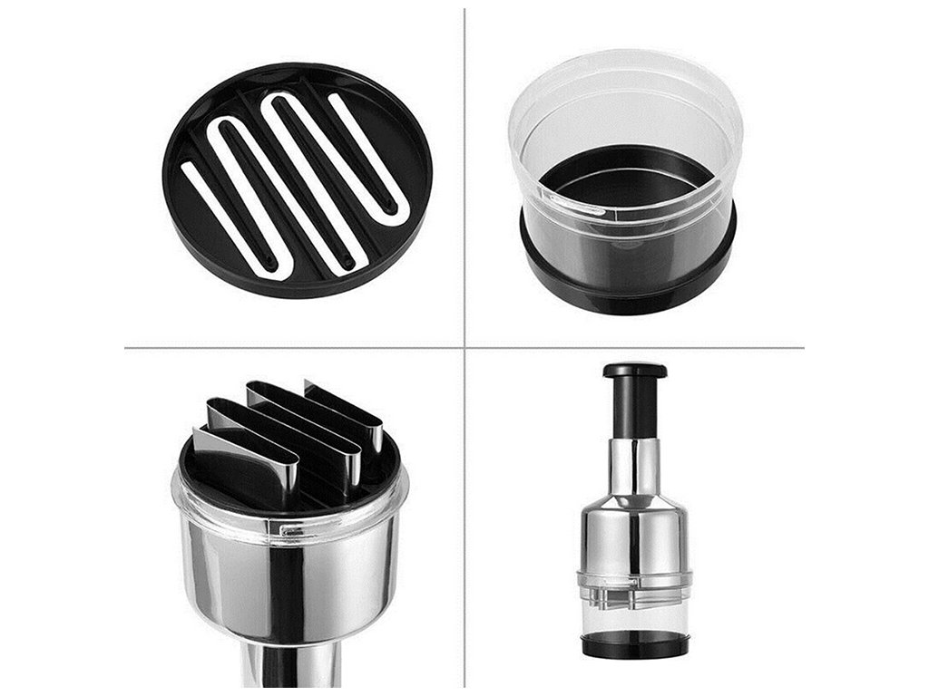Má 6 ostrých nožů, které naseká většinu potravin . Při každém stisknutí se čepele spustí dolů a důkladně rozdrtí obsah nádoby.