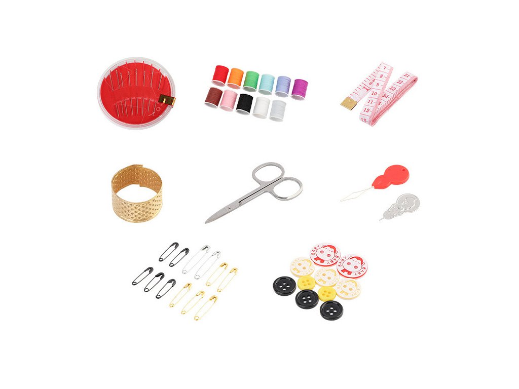 Šicí souprava obsahuje vše, co potřebujete pro rychlé opravy oděvů nebo jednoduché šicí projekty - doma i na cestách. Najdete v ní mimo jiné 12 barevných nití, nůžky, jehly, navlékač nití, náprstek, krejčovský metr, spínací špendlíky, knoflíky a celá sada je uzavřena v praktickém uzavíratelném kufříku. Díky tomu jsou všechny předměty vždy přehledně uspořádané a snadno se hledají.